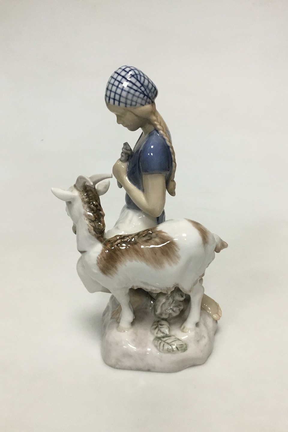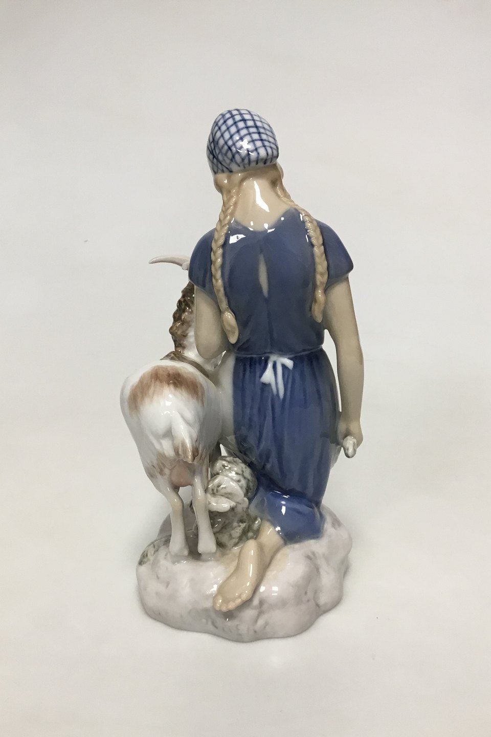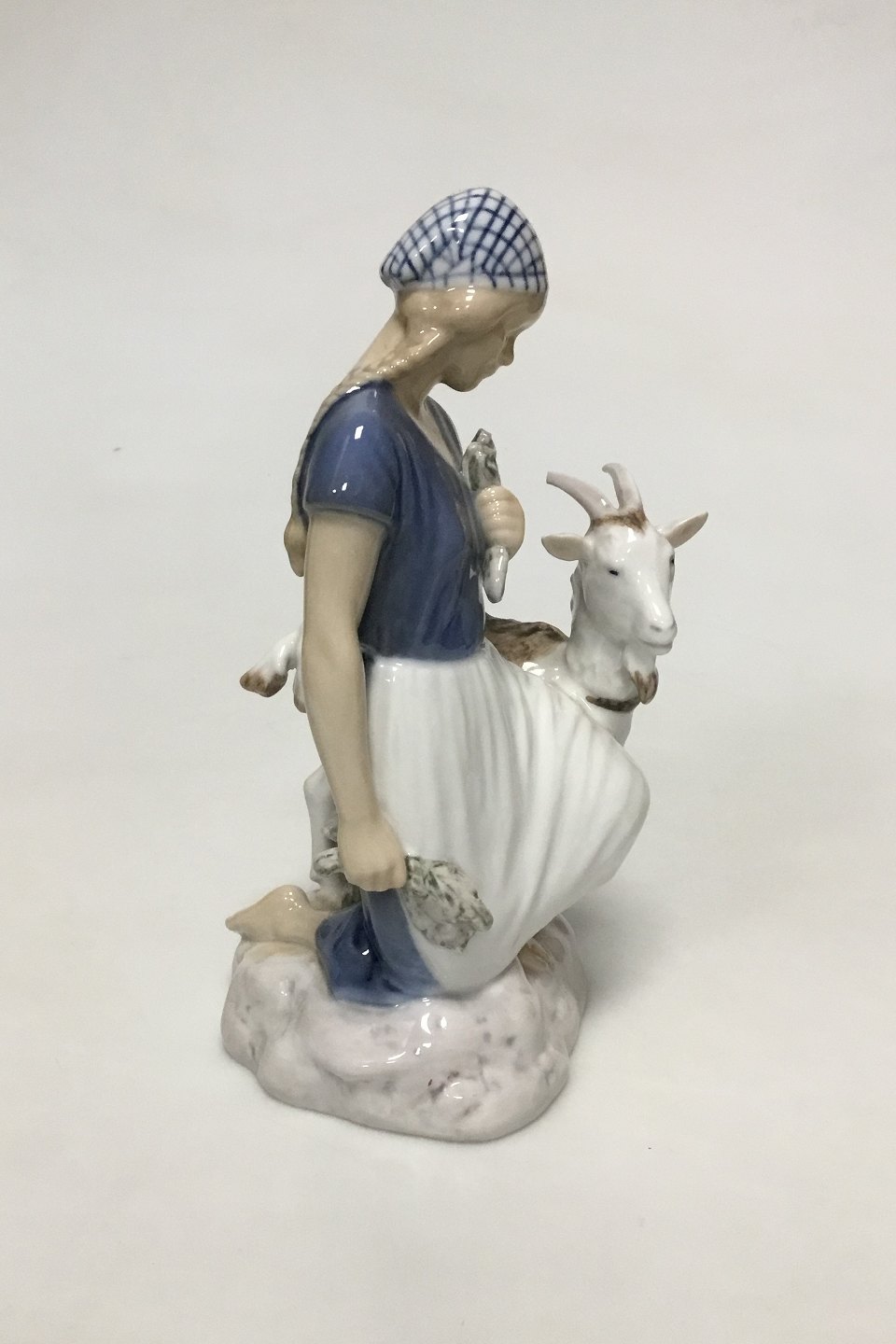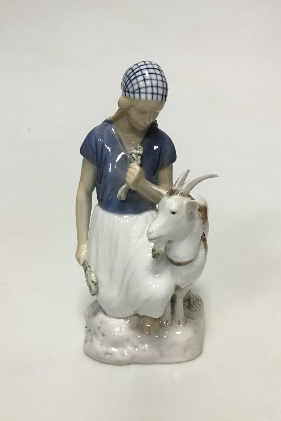 Bing & Grondahl Figurine of Girl With a Goat No 2180. Measures 19 cm / 7 31/64 in. The tip of a horn is broken off