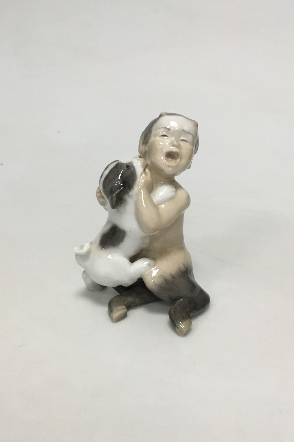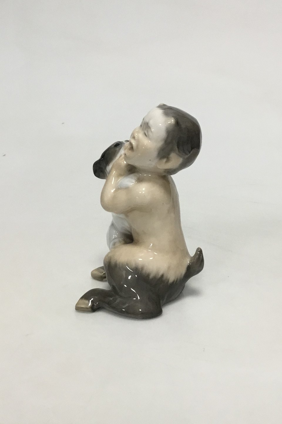 Royal Copenhagen Figurine og Faun with Dog No 2823. 3rd Quality. Measures 14.5 cm / 5 45/64 in.