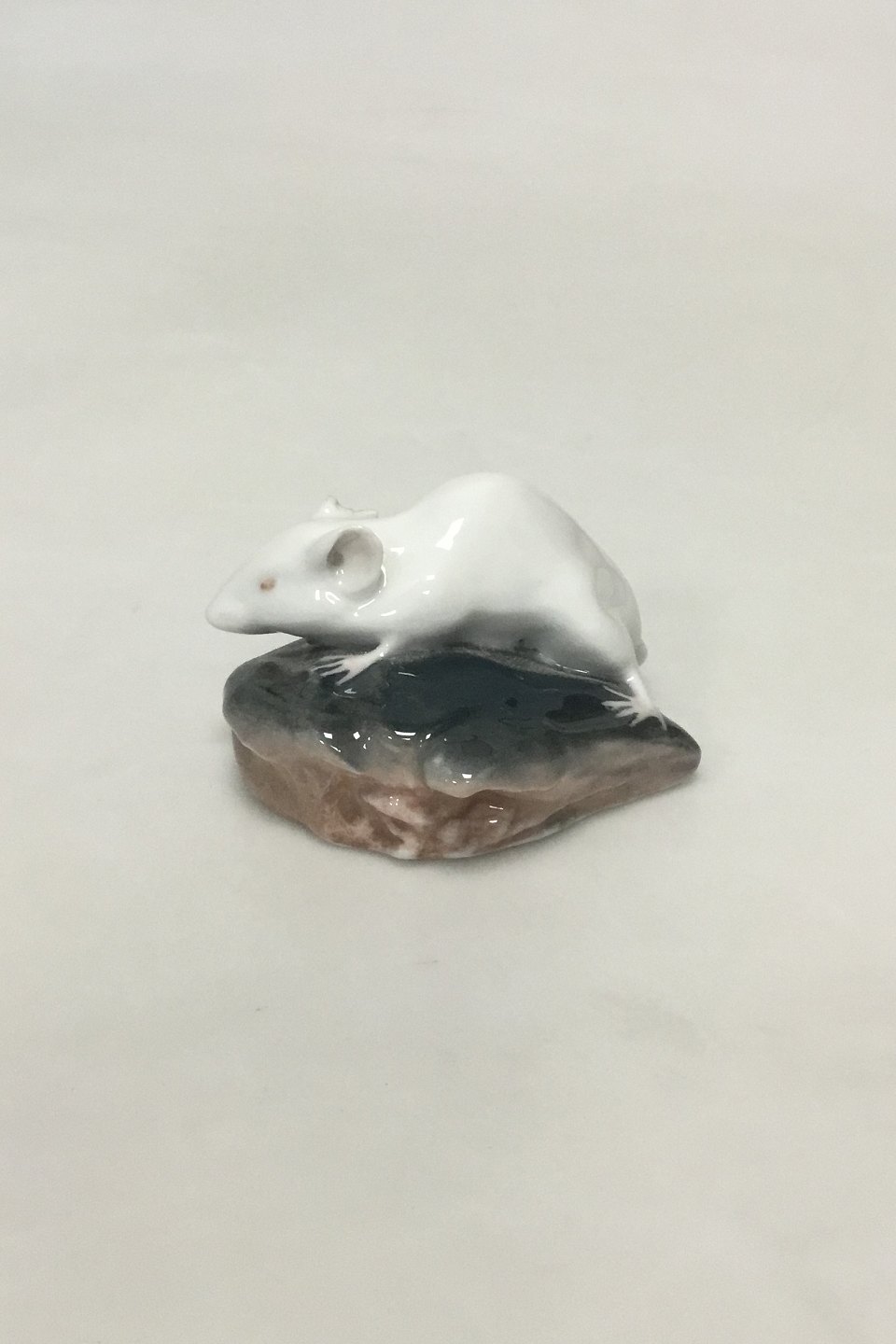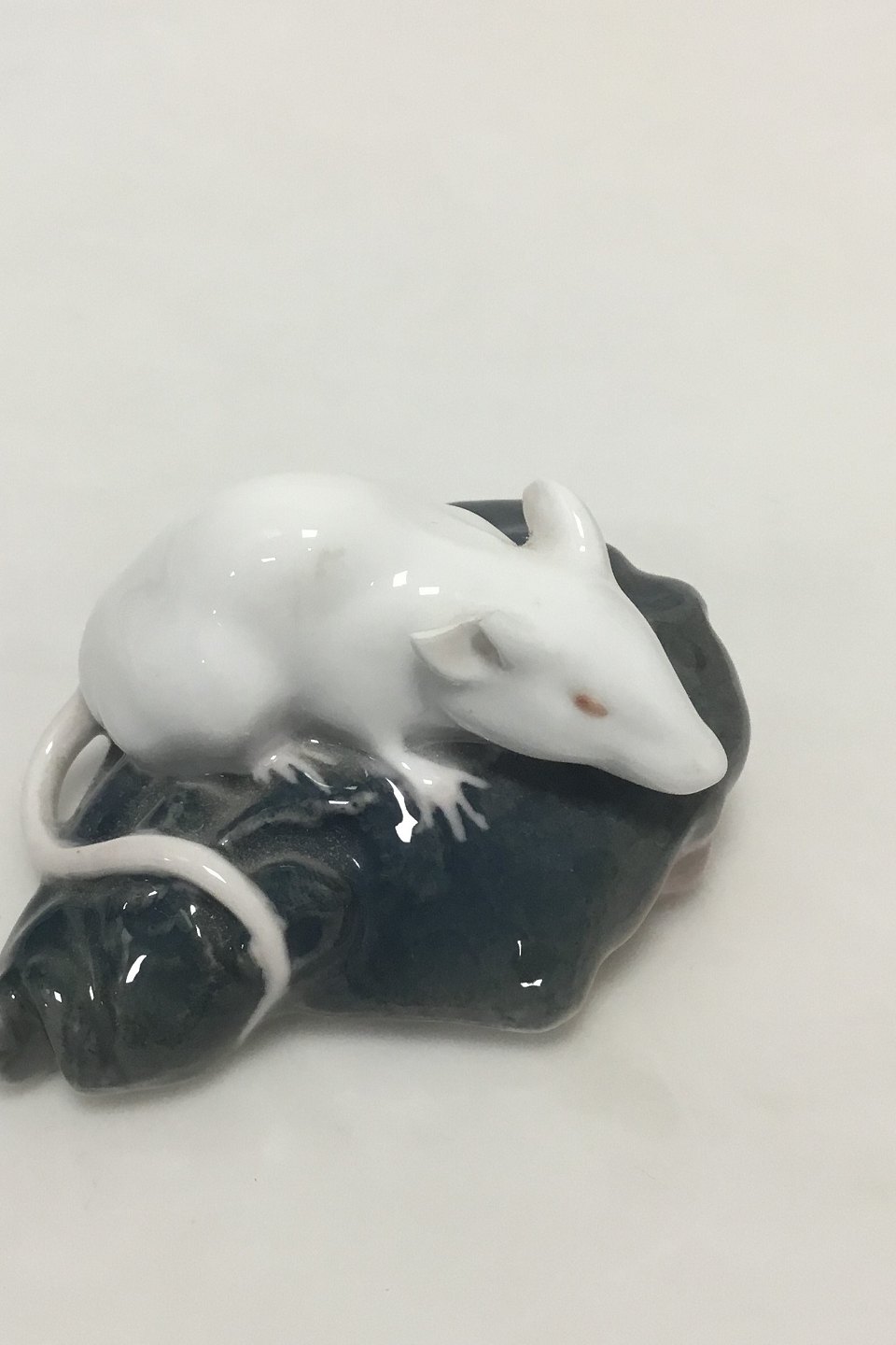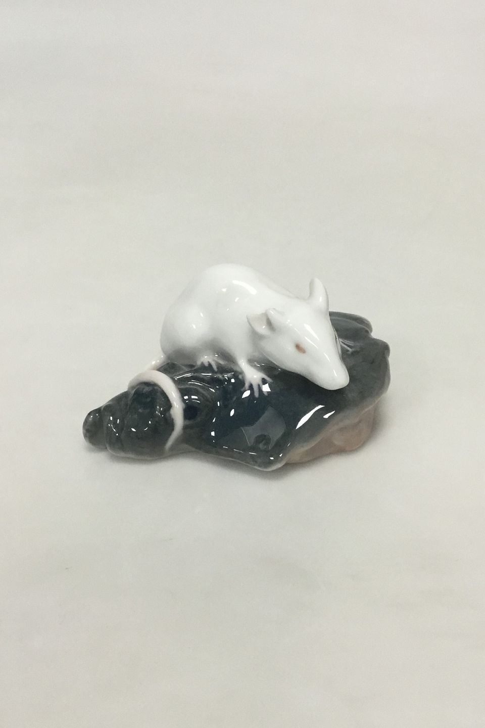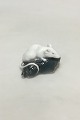 Royal Copenhagen Figurine of white Mouse on the head of a Plaice. Measures 8 cm / 3 5/32 in. Ear with chip