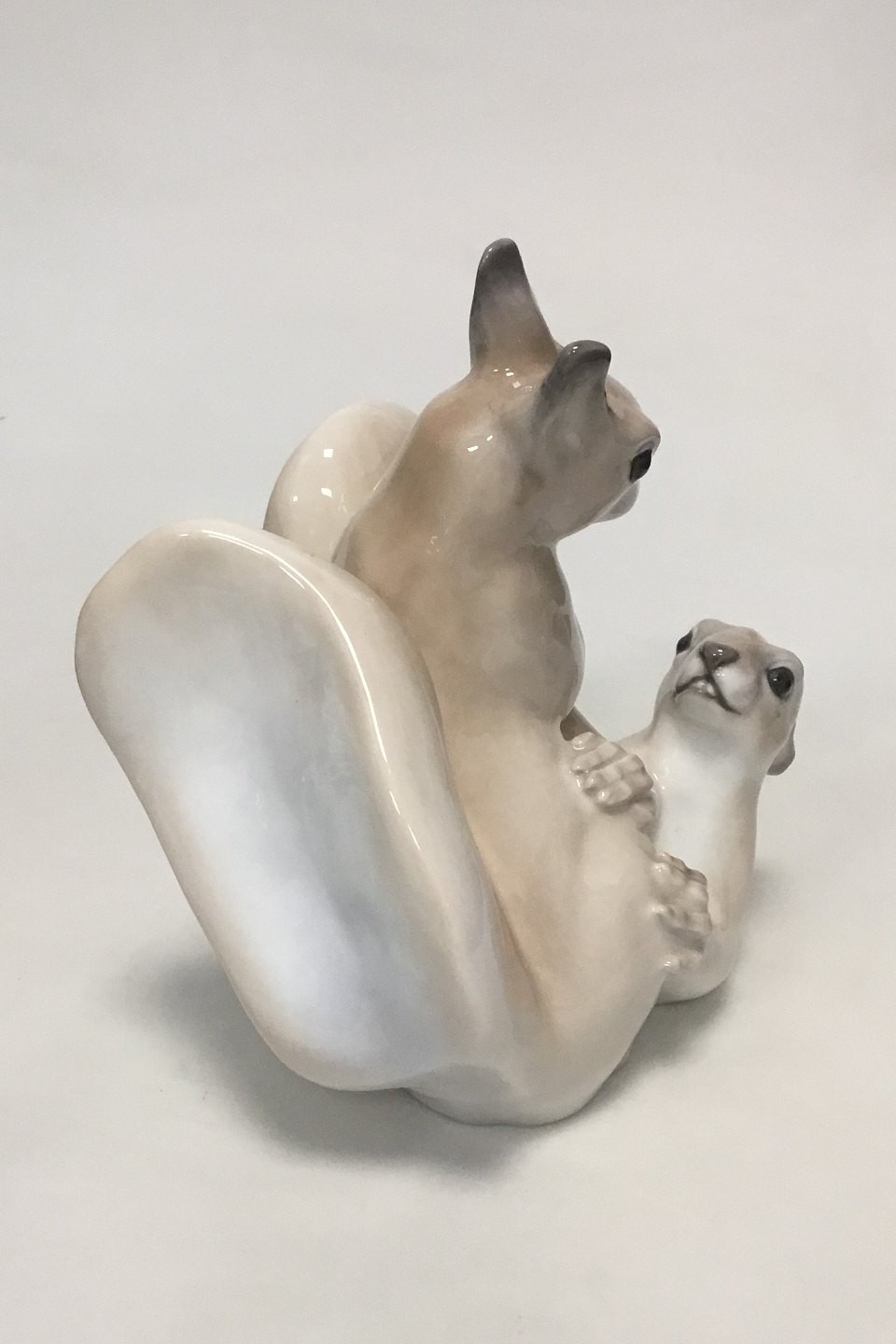 Royal Copenhagen Figurine of two squirrels fighting No 1455/2509. Knud Kyhn. Measures 22 cm / 8 212/32 in.