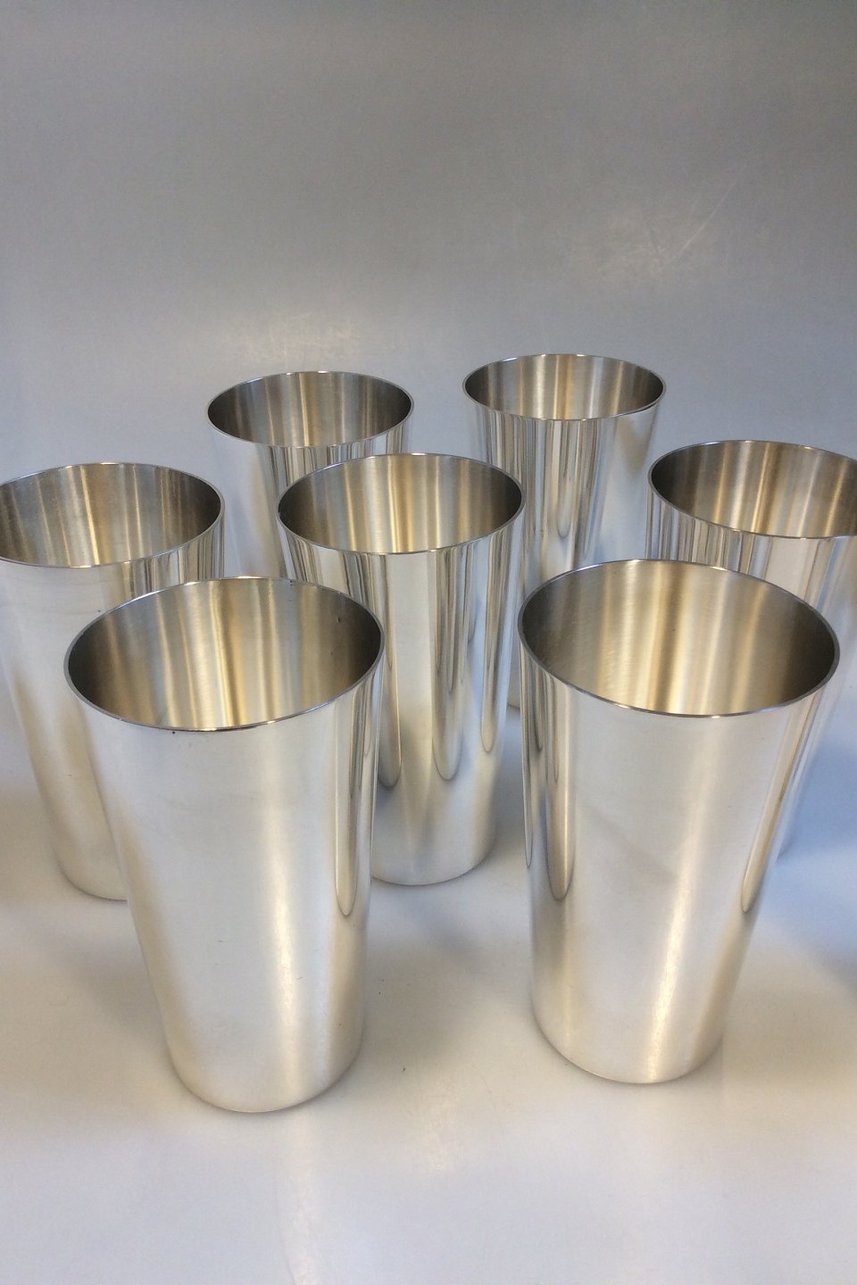 Set of 8 Georg Jensen Sterling Silver Modern Tall Beakers No 1200.