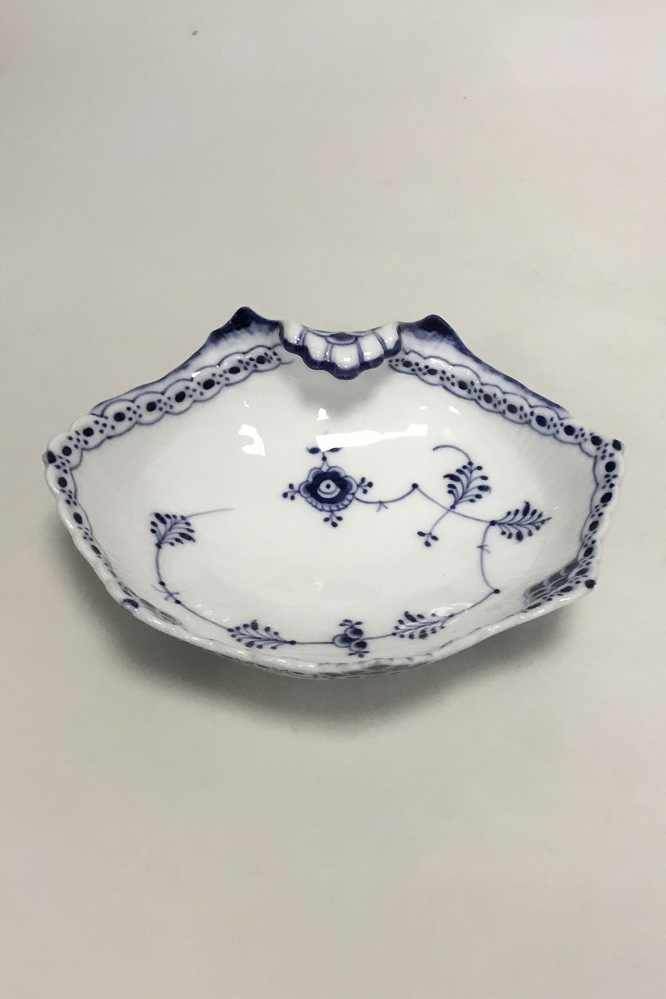 Royal Copenhagen Blue Fluted Half Lace Mussel-shaped Dish No 556. Measures 19 cm / 7 31/64 in. Chip on edge