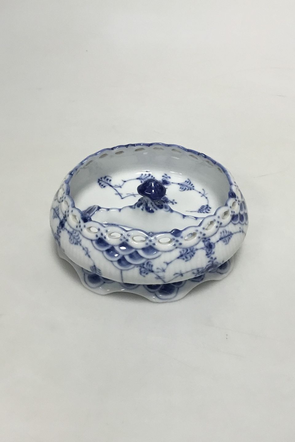 Royal Copenhagen Blue Fluted Full Lace Ash Tray No 1001. Measures 12 cm / 4 23/32 in. Chips on feet