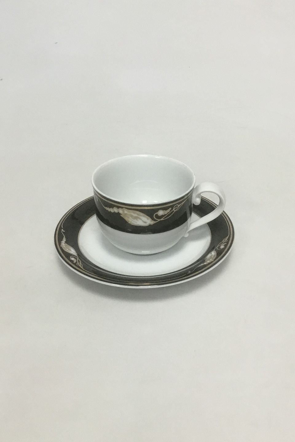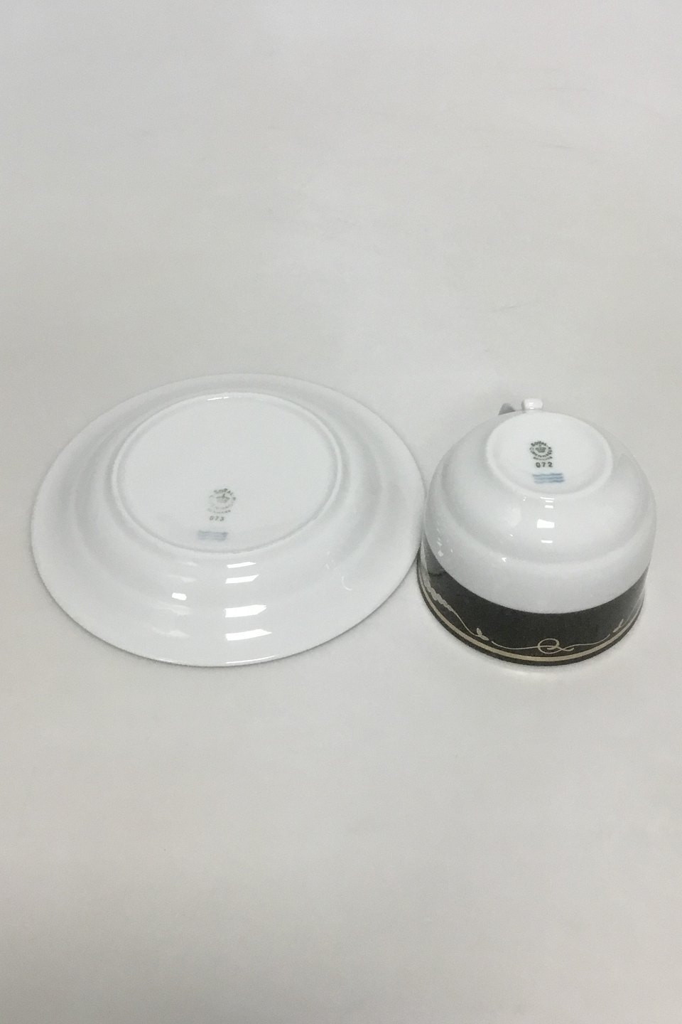 Royal Copenhagen Magnolia, Black Coffee Cup and Saucer 072/073. Measures Cup: 6 cm / 2 23/64 in. x 8 cm / 3 5/32 in. dia. Saucer 14.7 cm / 5 25/32 in.