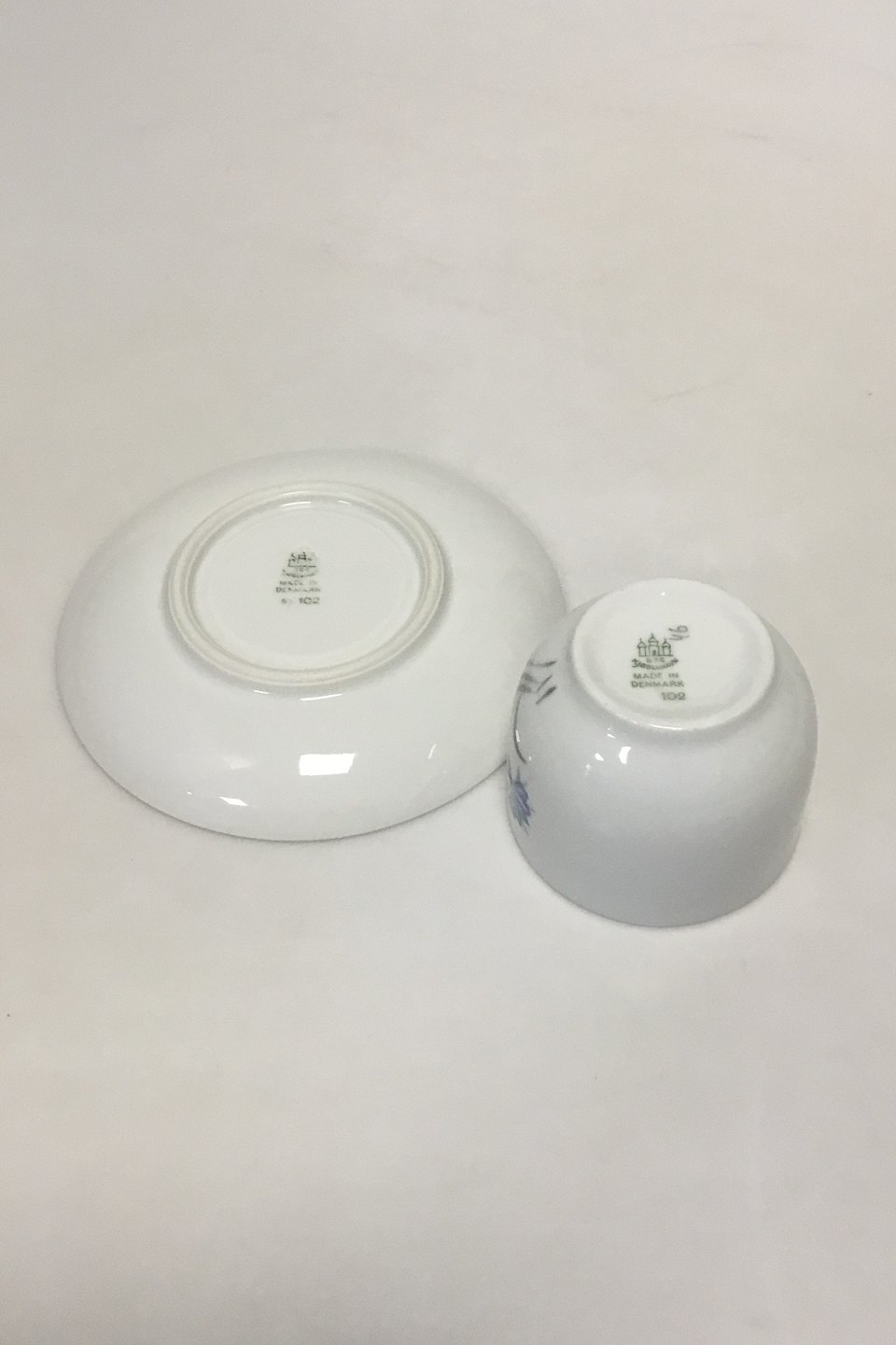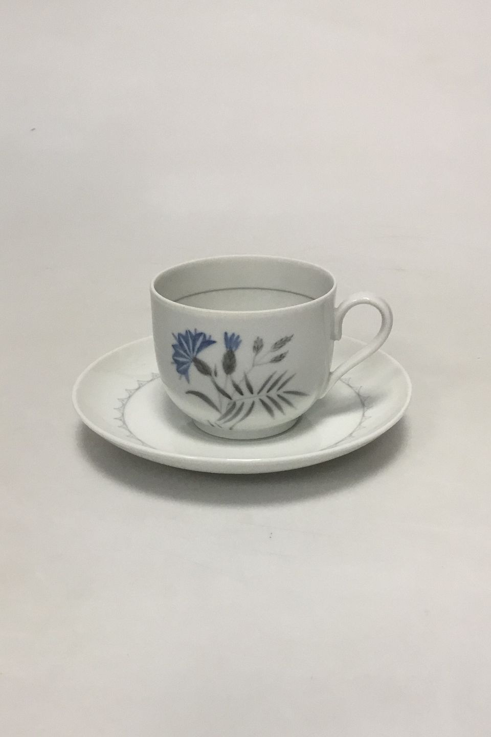 Bing & Grondahl Demeter / Whiye Cornflower Coffee Cup and Saucer No 102. Cup measures 6 cm H. 7 cm dia. Saucer 13.5 cm dia.