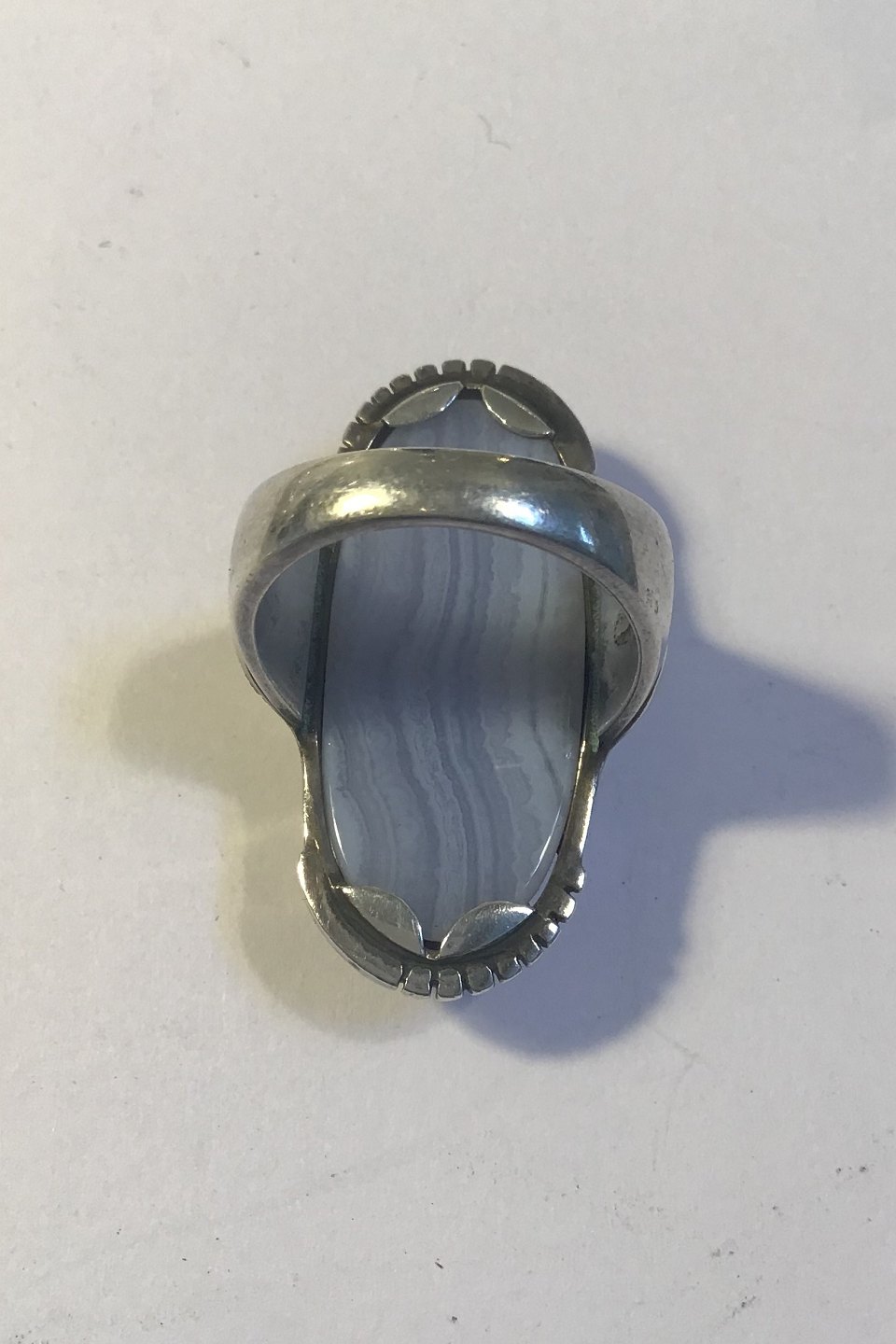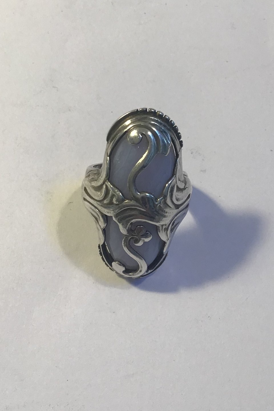 Georg Jensen Sterling Silver Ring No 18 w Chalcedony stone. Moonlight Blossom Ring Size 54(US 5 1/4). Measures 3.5 cm / 1 3/8 in. Weight 12.3 g / 0.43 oz.
