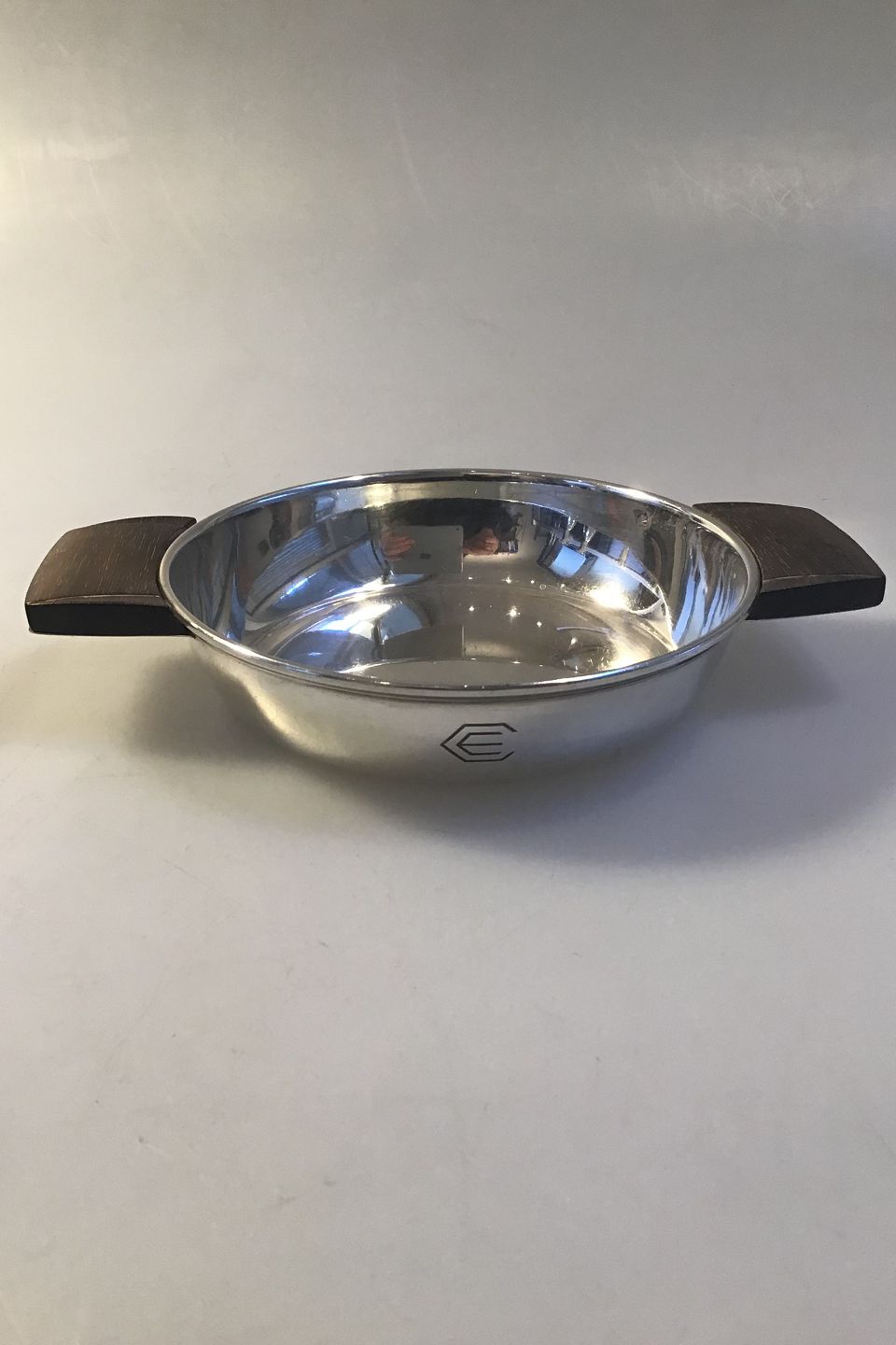 French Silver Dish (950) Wooden handles Engraved Measures H 3 cm (1 3/16 in)Diam 12 cm(4 23/32 in) Weight 126.6 gr/4 47 oz