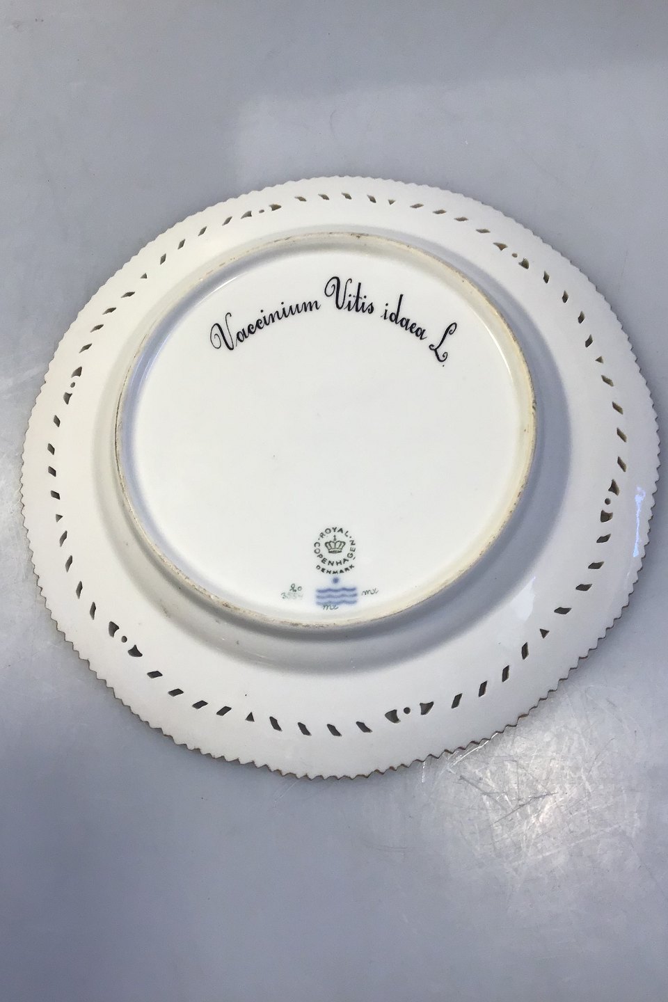 Royal Copenhagen Flora Danica Luncheon Plate No 20/3554 with Pierced Border. Latin Name:Vaccinium Vitis idaea L(Lingonberry). Measures 23 cm (9 1/16"). 1st Quality.