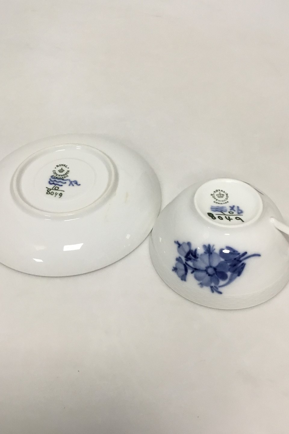Royal Copenhagen Blue Flower Braided Tea Cup and Saucer No 8049. Measures Cup: 5 cm / 1 31/32 in. x 10 cm / 3 15/16 in. dia. Saucer: 15 cm / 5 29/32 in.