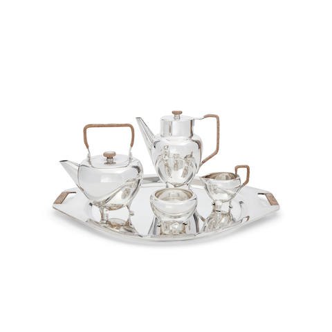 Georg Jensen Sterling Silver Coffee pot Tea Pot, sugar bowl, creamer no 960 and large tray no 984
