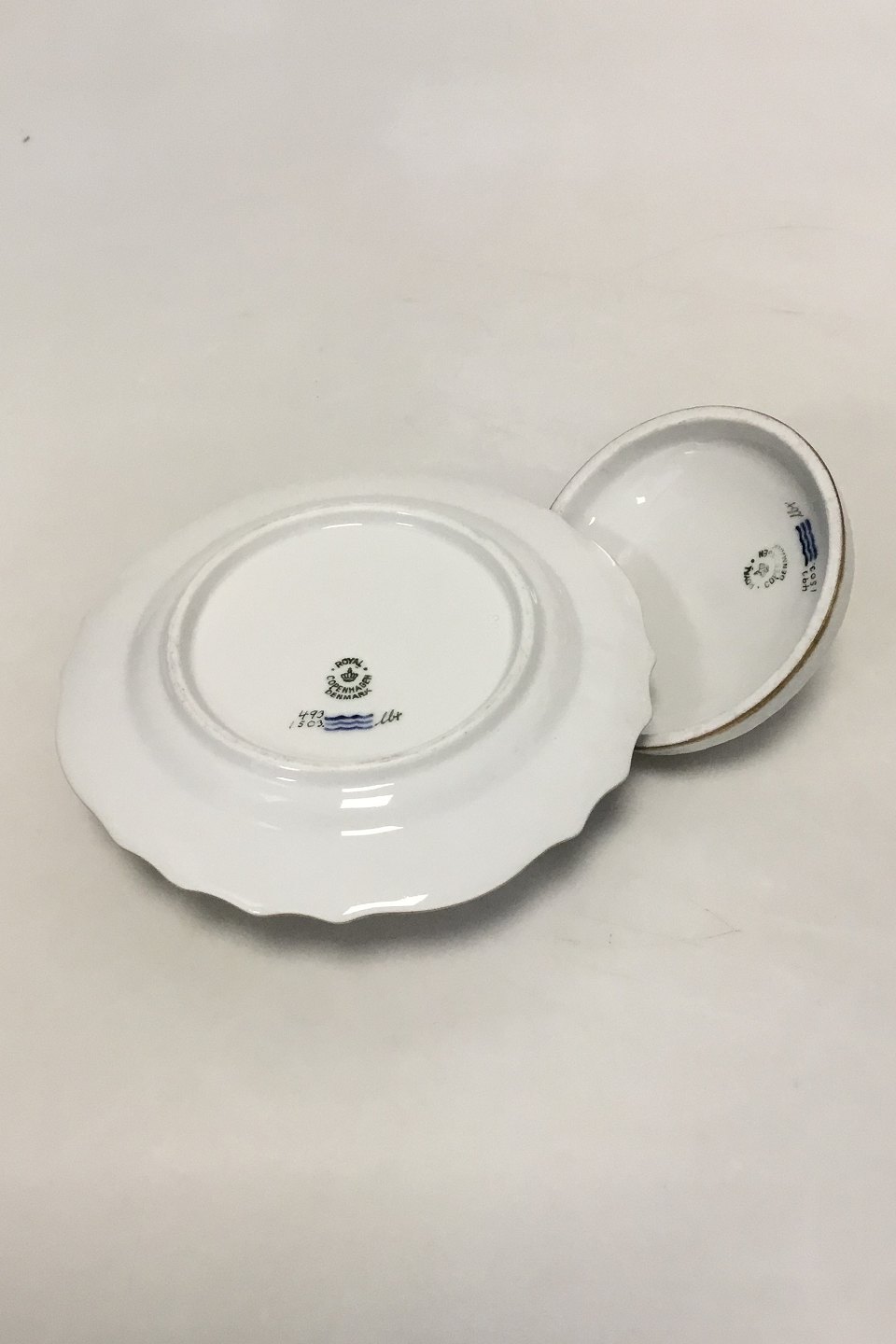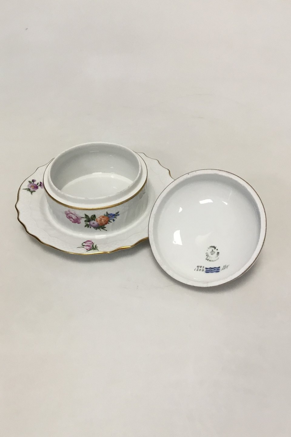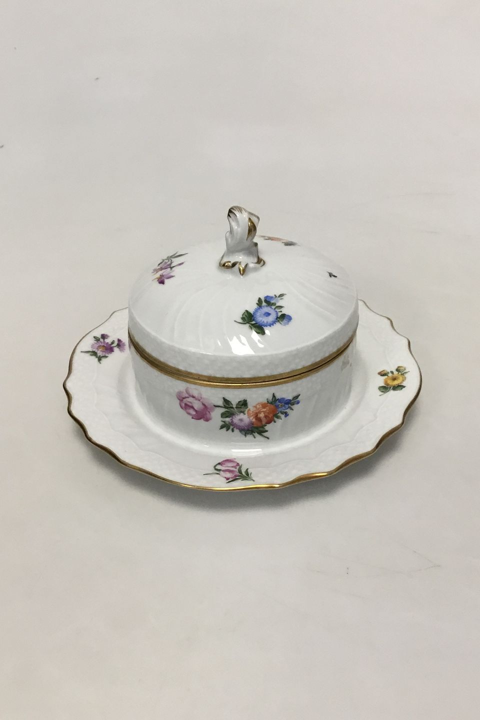 Royal Copenhagen Light Saxon Flower Lidded Butter Dish No 1503. Measures 18 cm / 7 3/32 in.