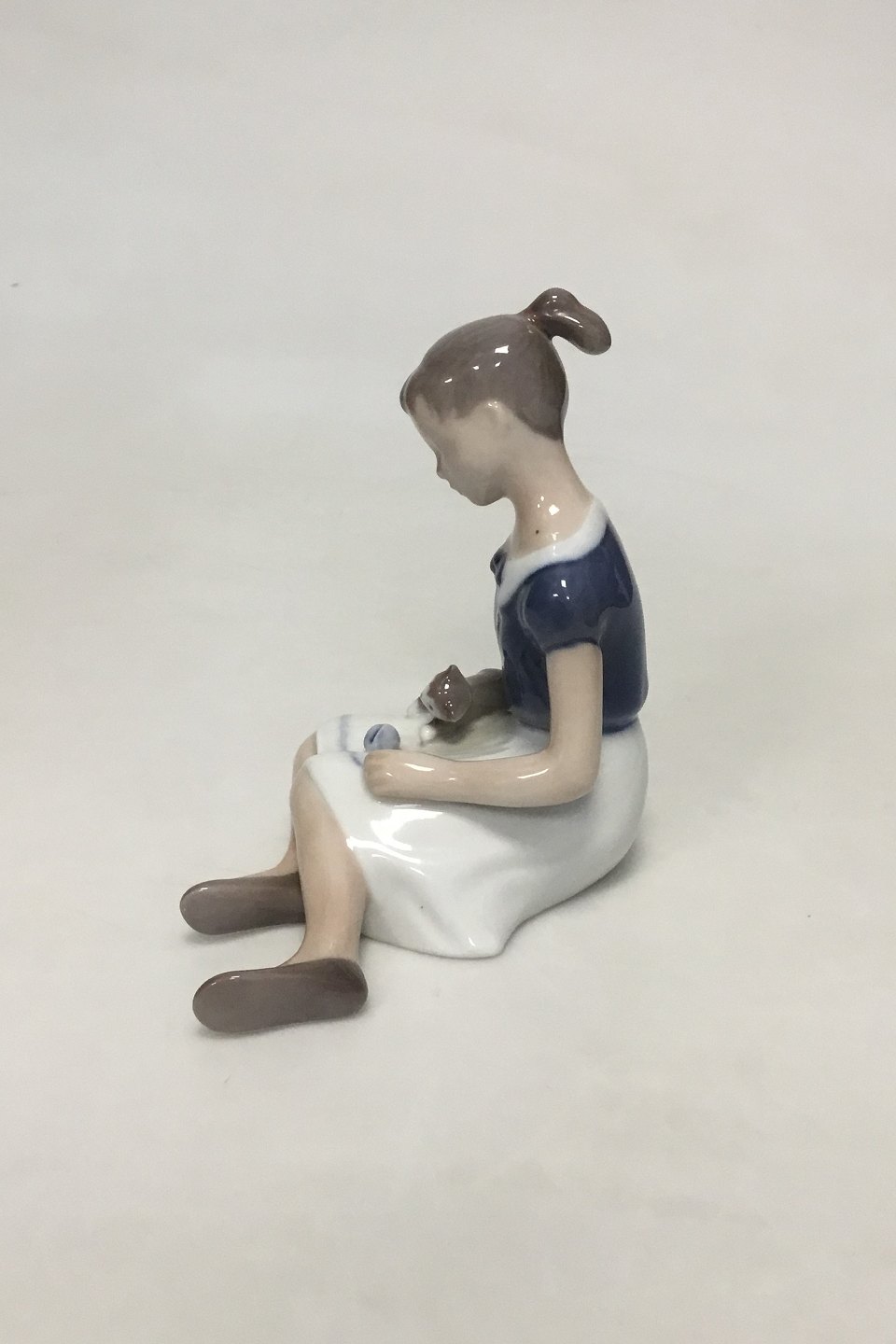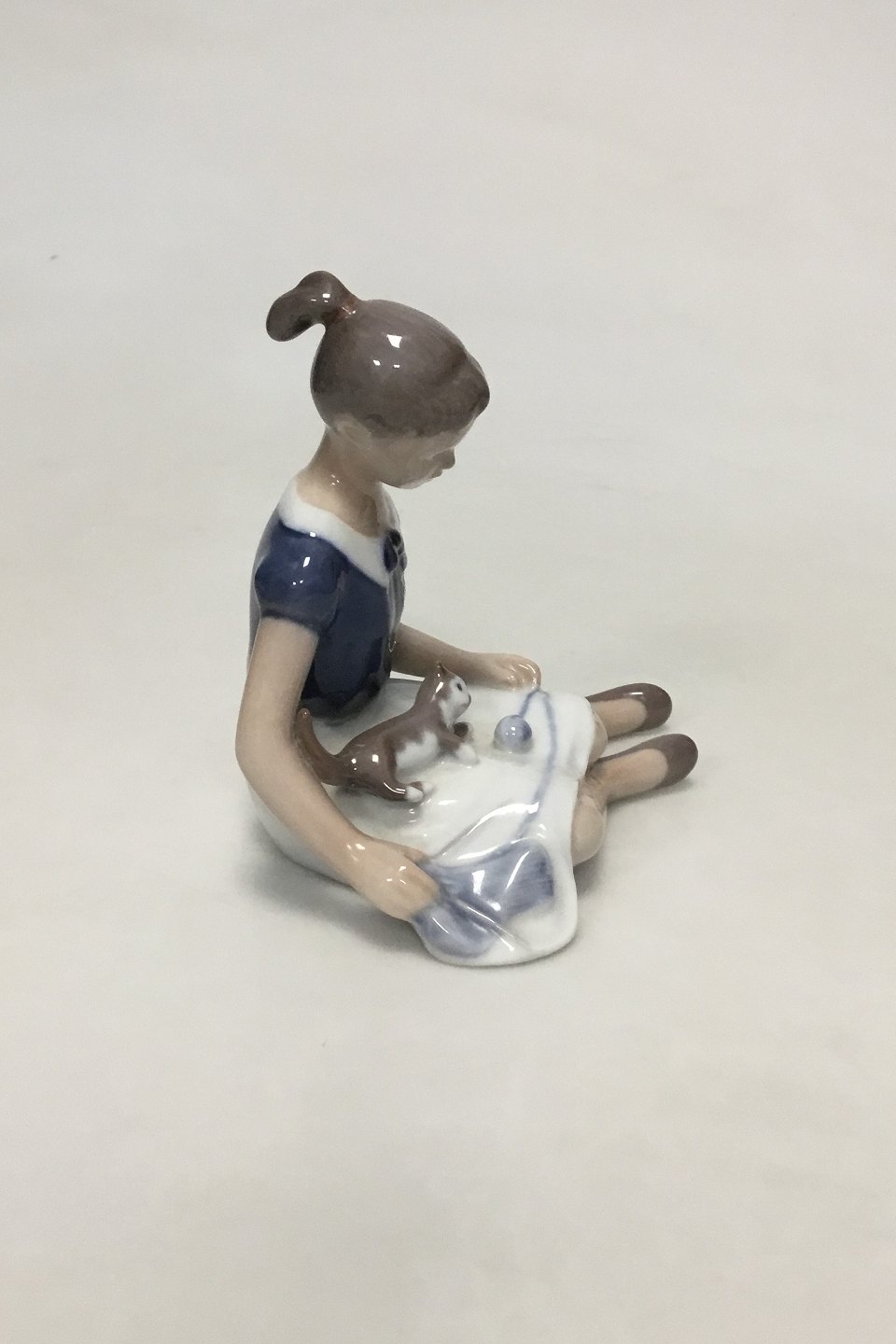 Bing and Grondahl Figurine of Birgitte - Girl with Cat No. 2329. Measures 12 cm (4 23/32 in.)