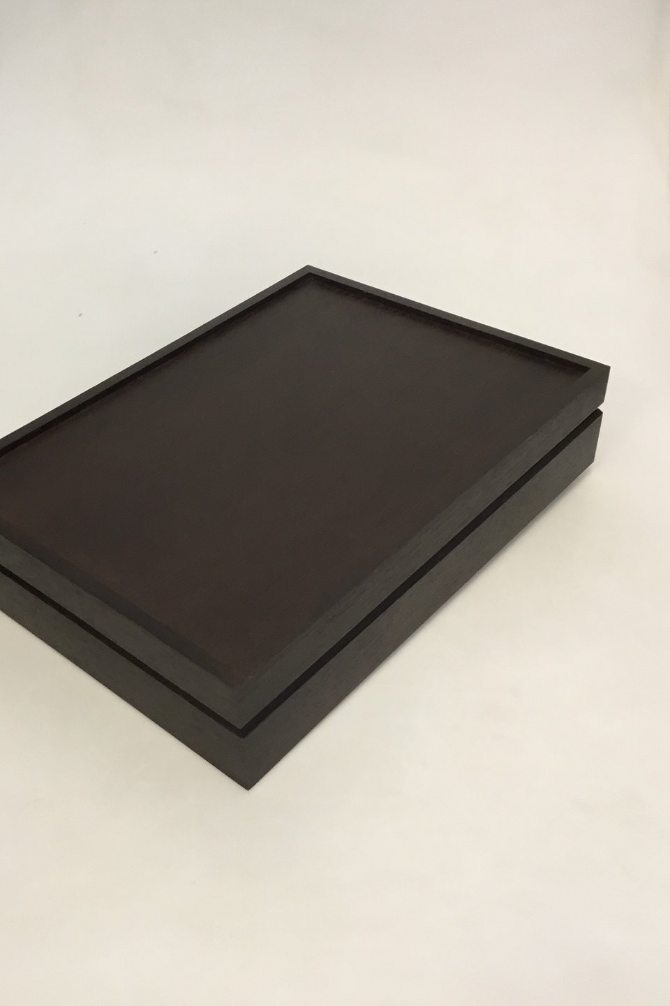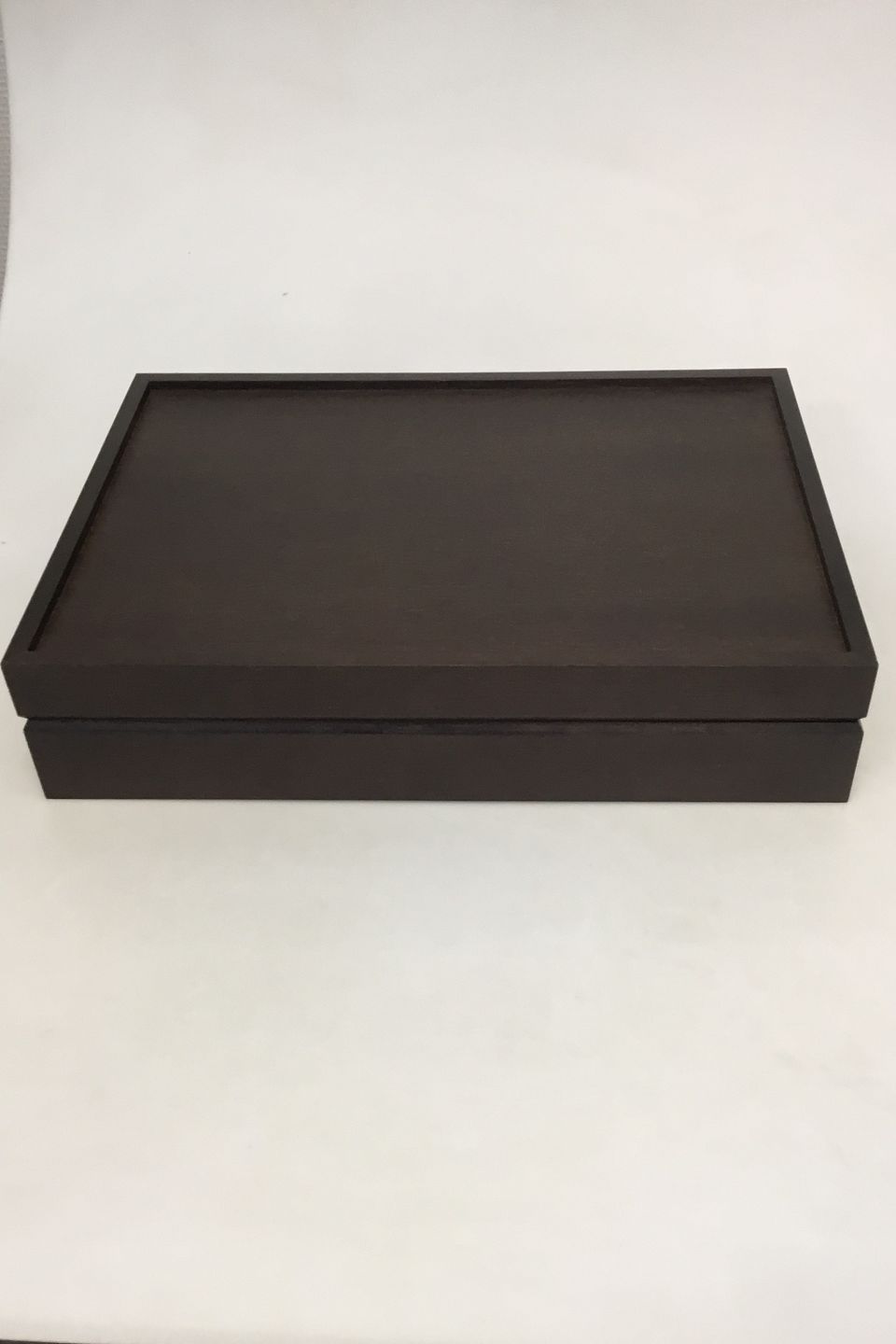 Dark wood cutlery box with space for cutlery for 6 persons/44 pcs. Measures 39 cm / 15 23/64 in. x 28 cm / 11 1/32 in. x 8.5 cm / 3 11/32 in.