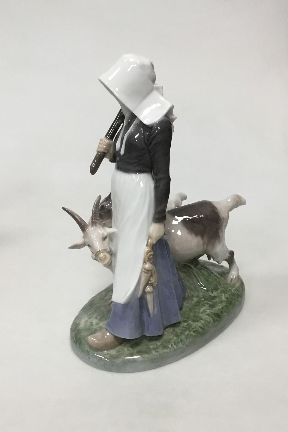 Royal Copenhagen Figurine of woman with goats No 694. Measures 22 cm / 8 21/32 in.