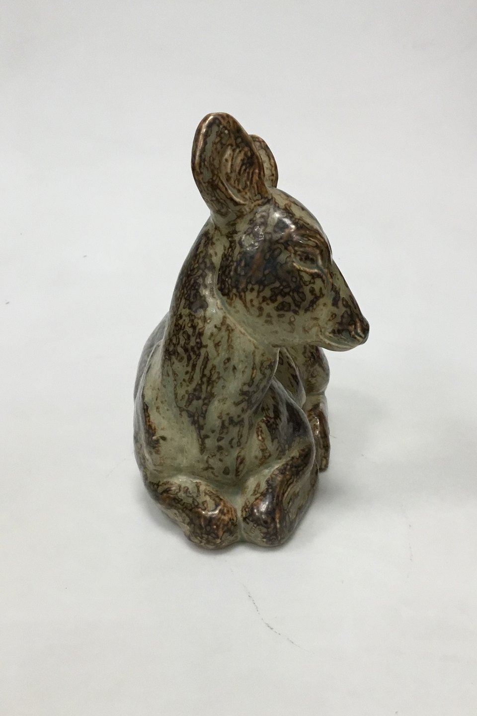 Royal Copenhagen Stoneware Figurine of lying young deer No 20506. Designed by Knud Kyhn. Measures 24 cm / 9 29/64 in.