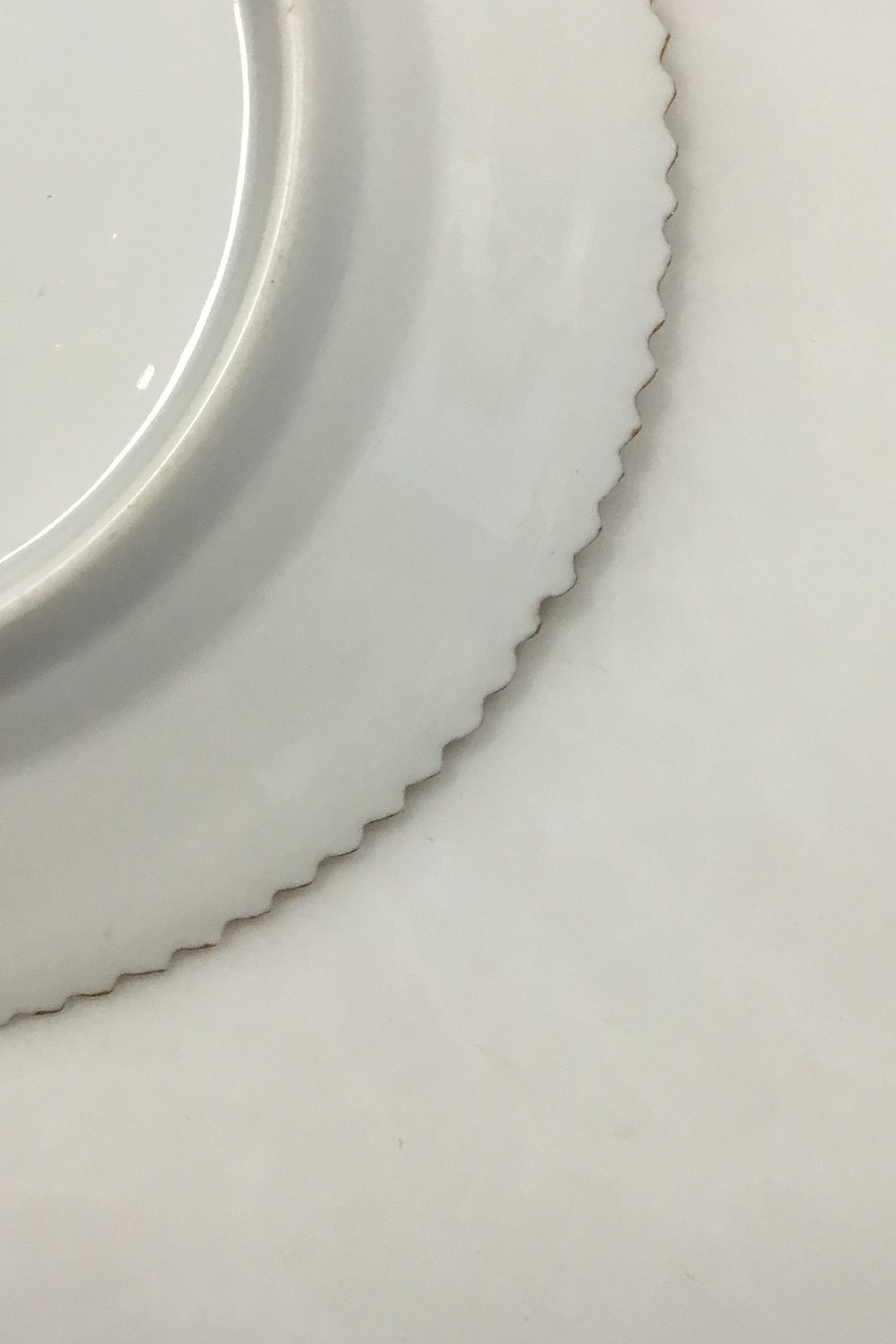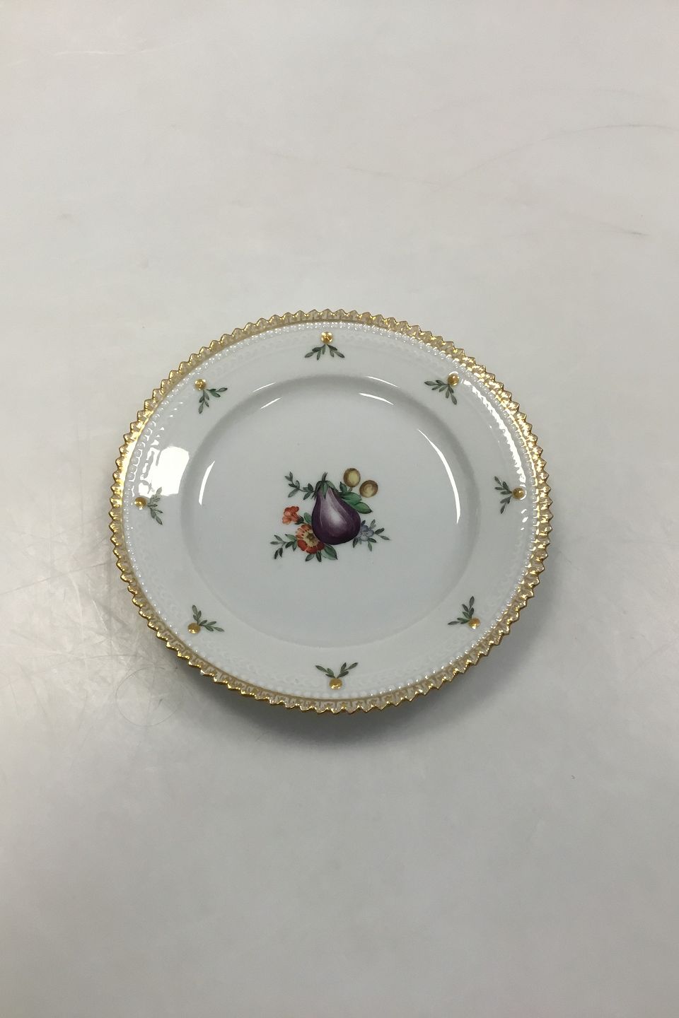 Cake plate No 17/352. Decorated with fruits / vegetables in overglaze and gold edge. Measures 14cm (5 33/64 in.) 2nd Quality with chipped edge.