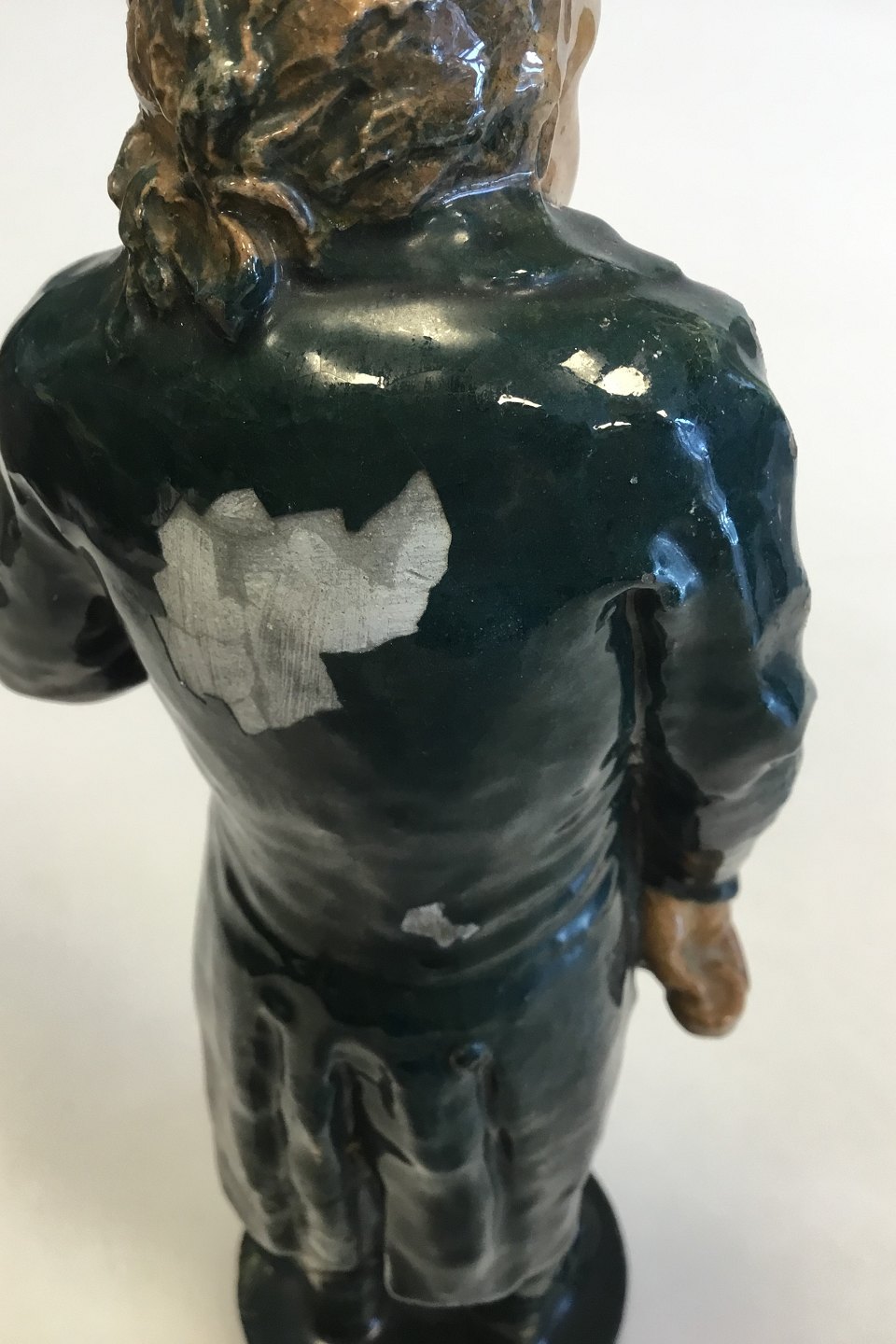Georg Jensen Ceramic Figurine of the danish actor Olaf Poulsen. Signed. Measures 27 cm / 10 5/8 in. Crack on glaze