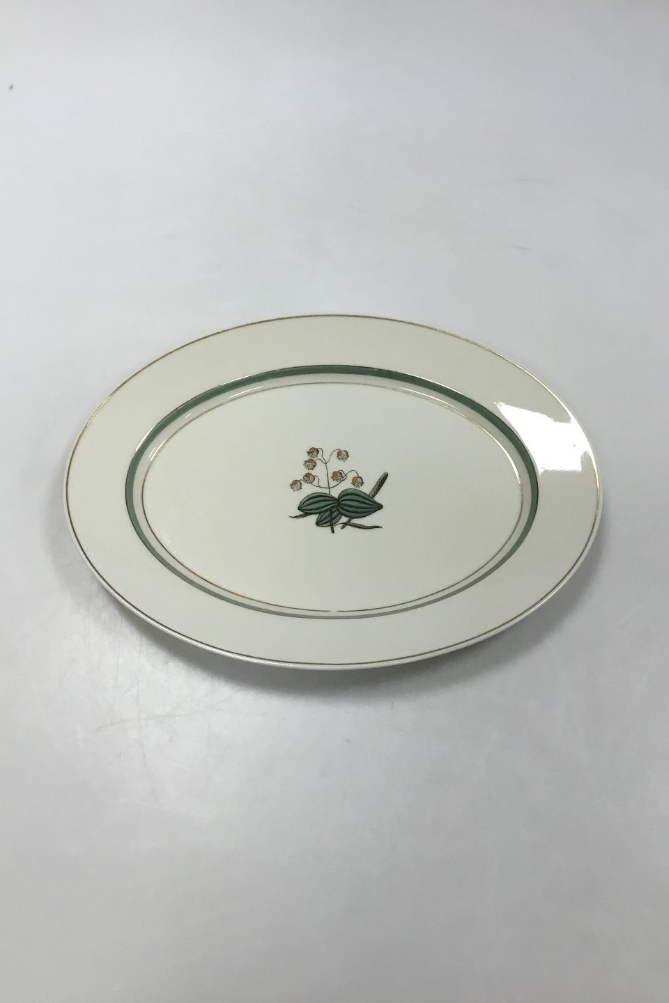 Royal Copenhagen Quaking Grass Oval Platter No 884/9583. Measures 28,2 cm (11 7/64"). Slight wear on gold edge.