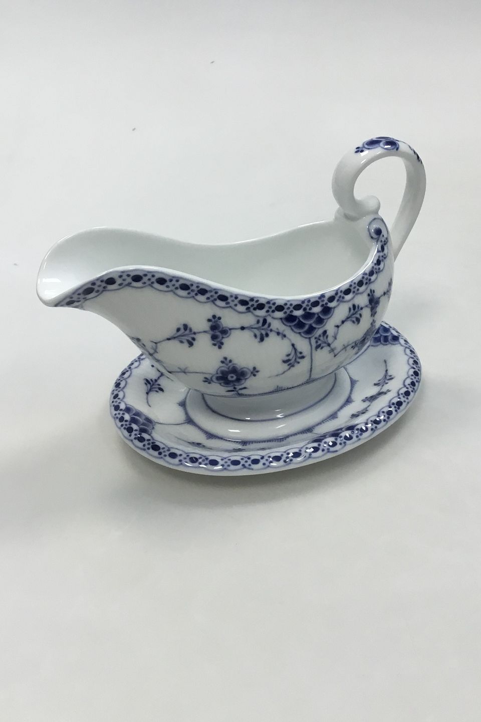 Royal Copenhagen Blue Fluted Half Lace Sauce Boat No 583. Measures 19 cm / 7 31/64 in. With a minor chip under the edge.