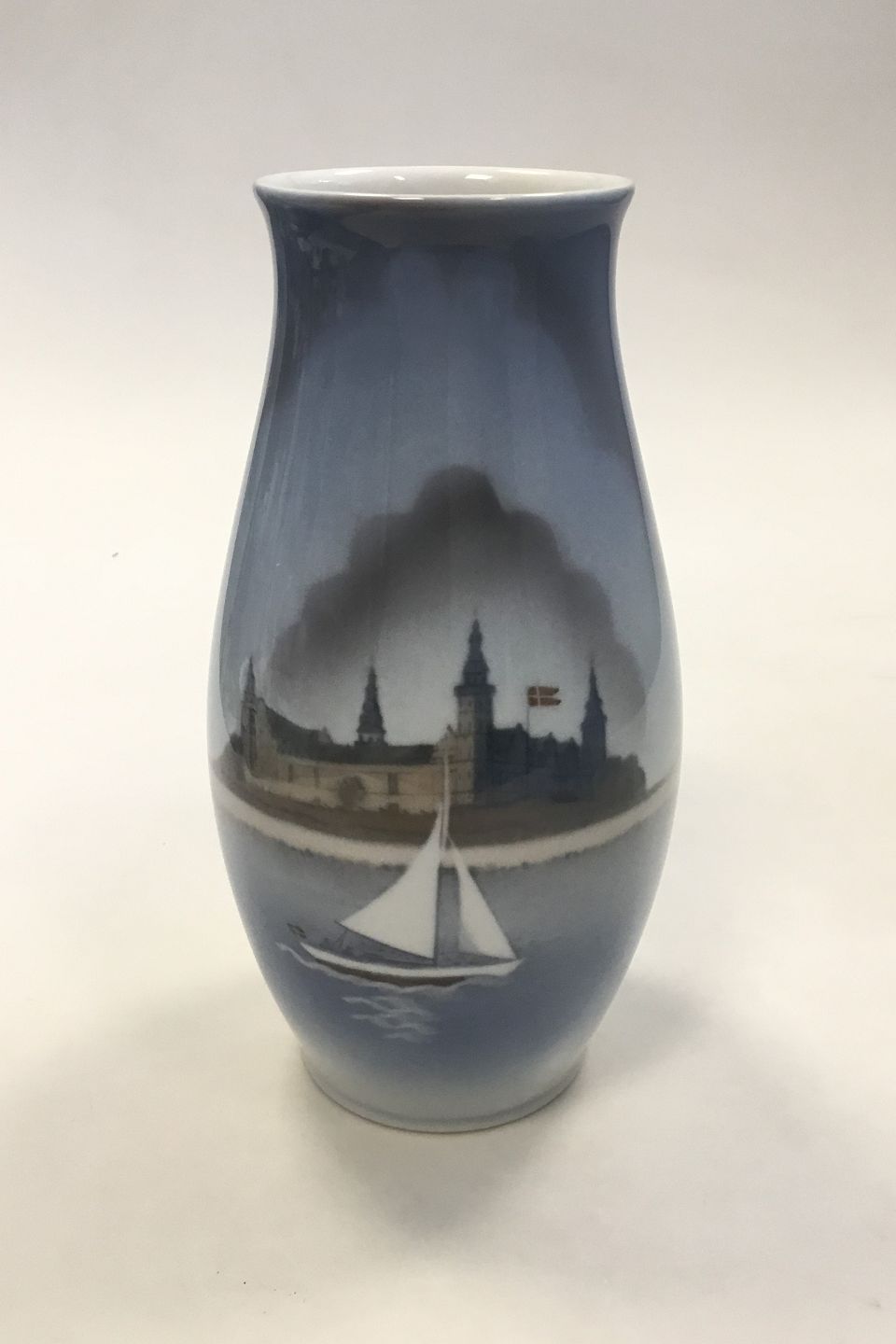 Bing & Grondahl Art Nouveau Vase with motif of Kronborg Castle No 1302/6247. Measures 22 cm / 8 21/32 in.
