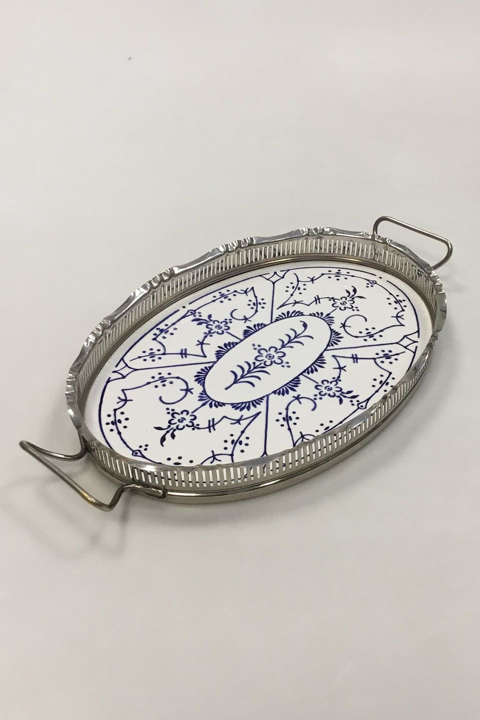 Bayerische Metall Fabrik BMF Germany, Blue fluted Painted Tray of porcelain and metal. Measures 25 cm / 9 27/32 in.