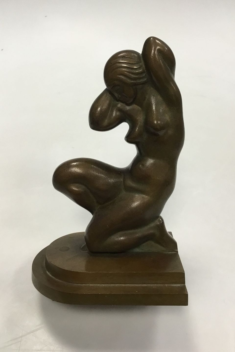 Bronzefigurine/Bookend of kneeling woman. Made by Tinos Denmark in Denmark, 1930s. Measures 19 cm high and weighs 2.38 kg(5 lb.)