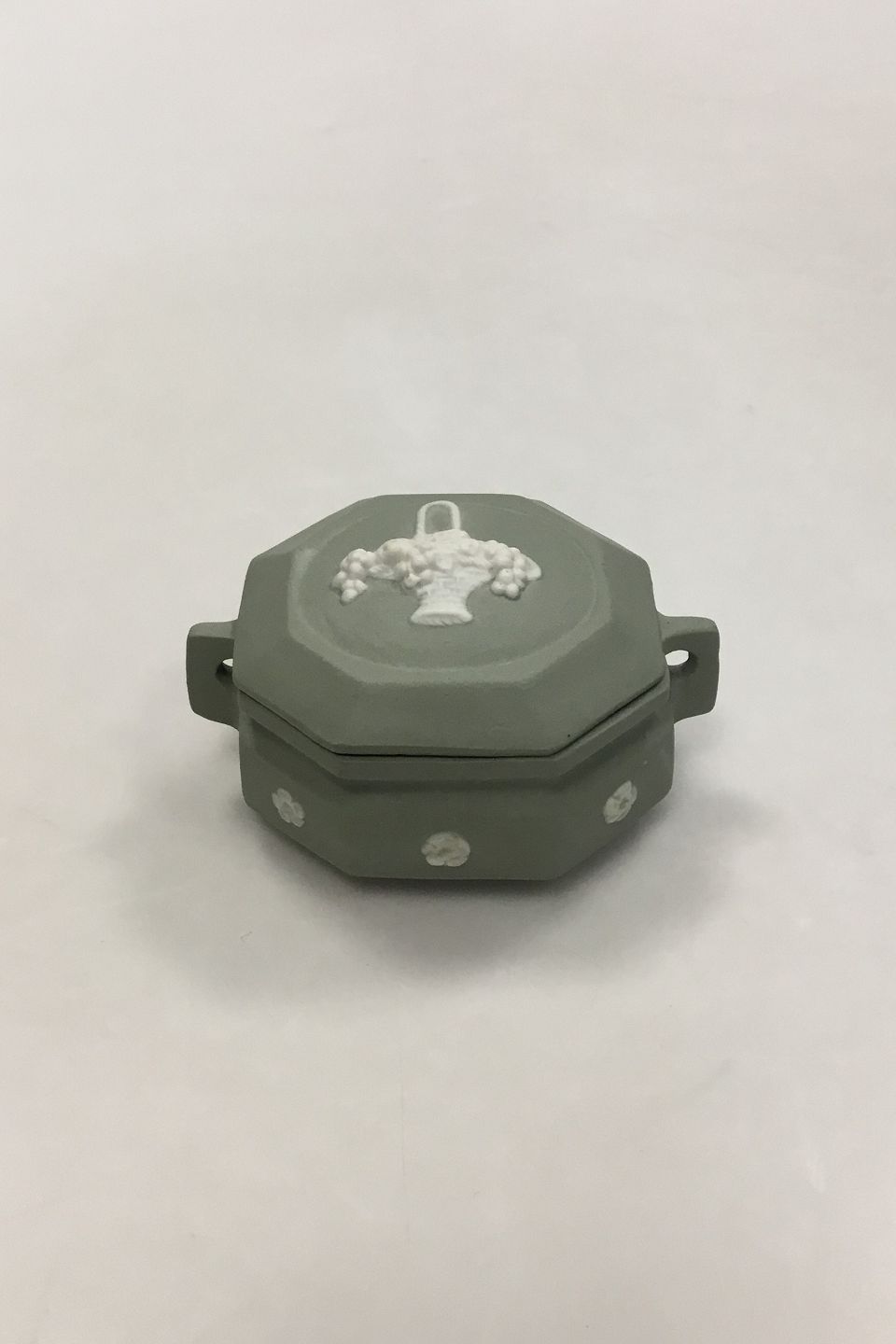 Wedgewood Small green bonbonniere decorated with flowers / 3 47/64 in.
