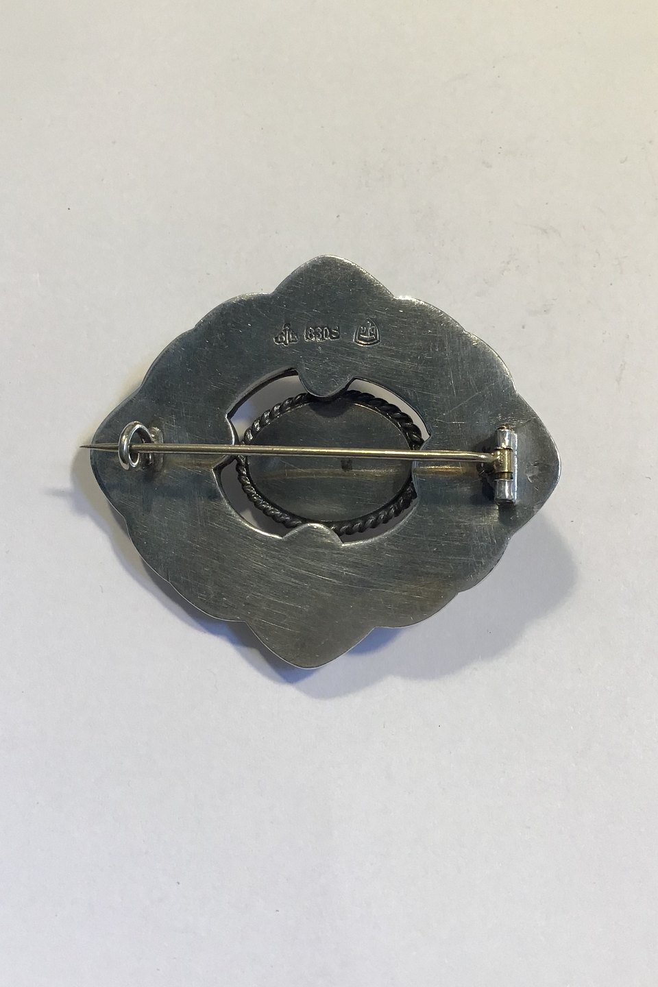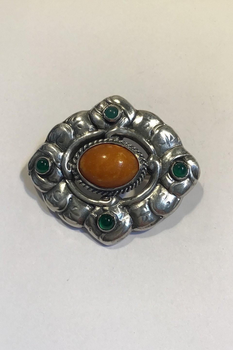 Danish Silver Grann og Laglye with Amber and Chrysoprase Meaasures 4.5 cm x 5.2 cm(1 49/64 in x 2 3/64 in) Weight 15.2 gr/0.54 oz