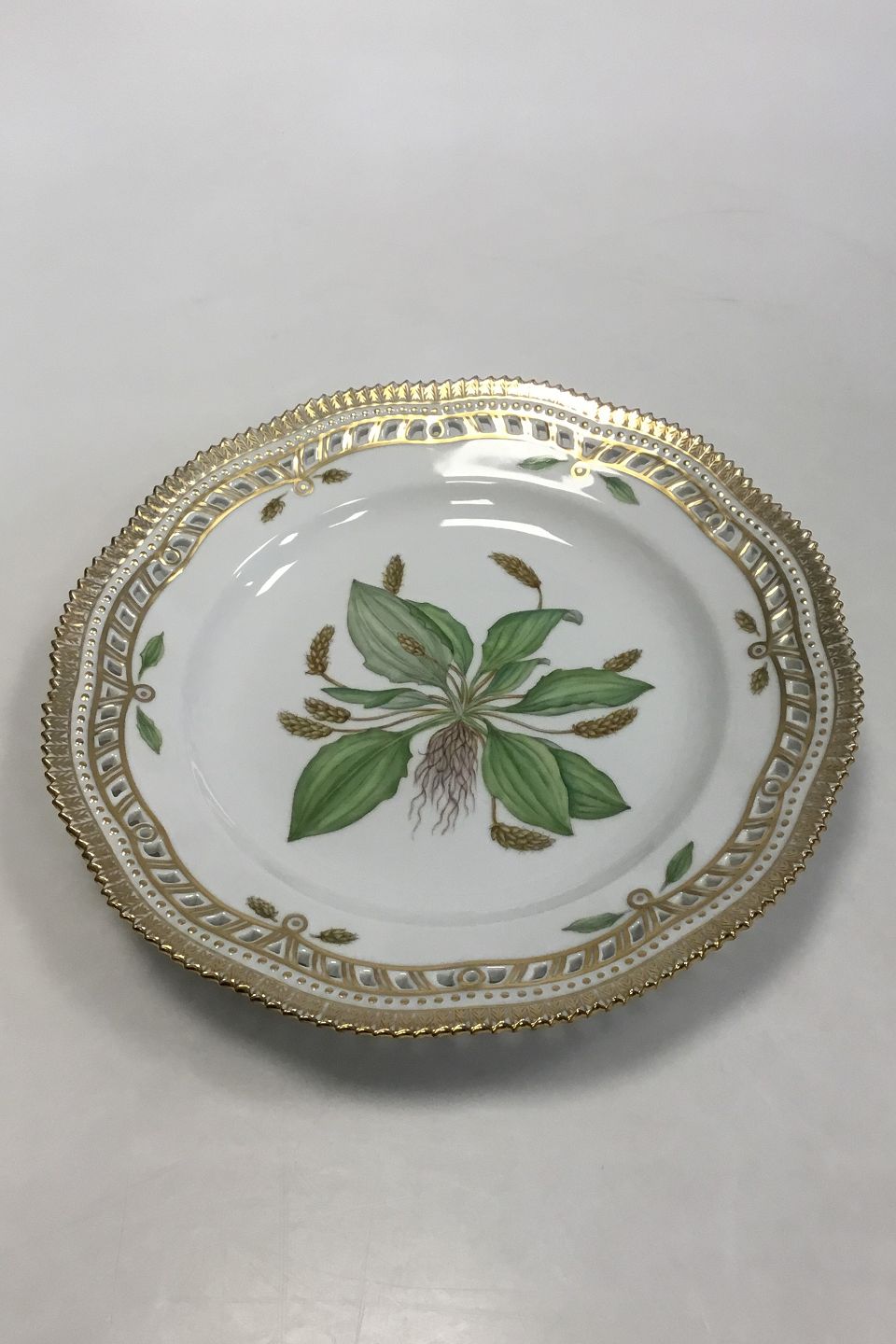 Royal Copenhagen Flora Danica Plate with pierced border No 20/3553. Latin name: Plantago intermedia Cjilib.. Måler 25.5 cm / 10 3/64 in.