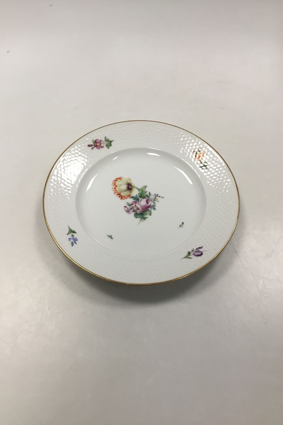 Royal Copenhagen Saxon Flower Light Bee Cell Lunch Plate No 493/2069. Measures 23,7 cm (9 21/64 in).