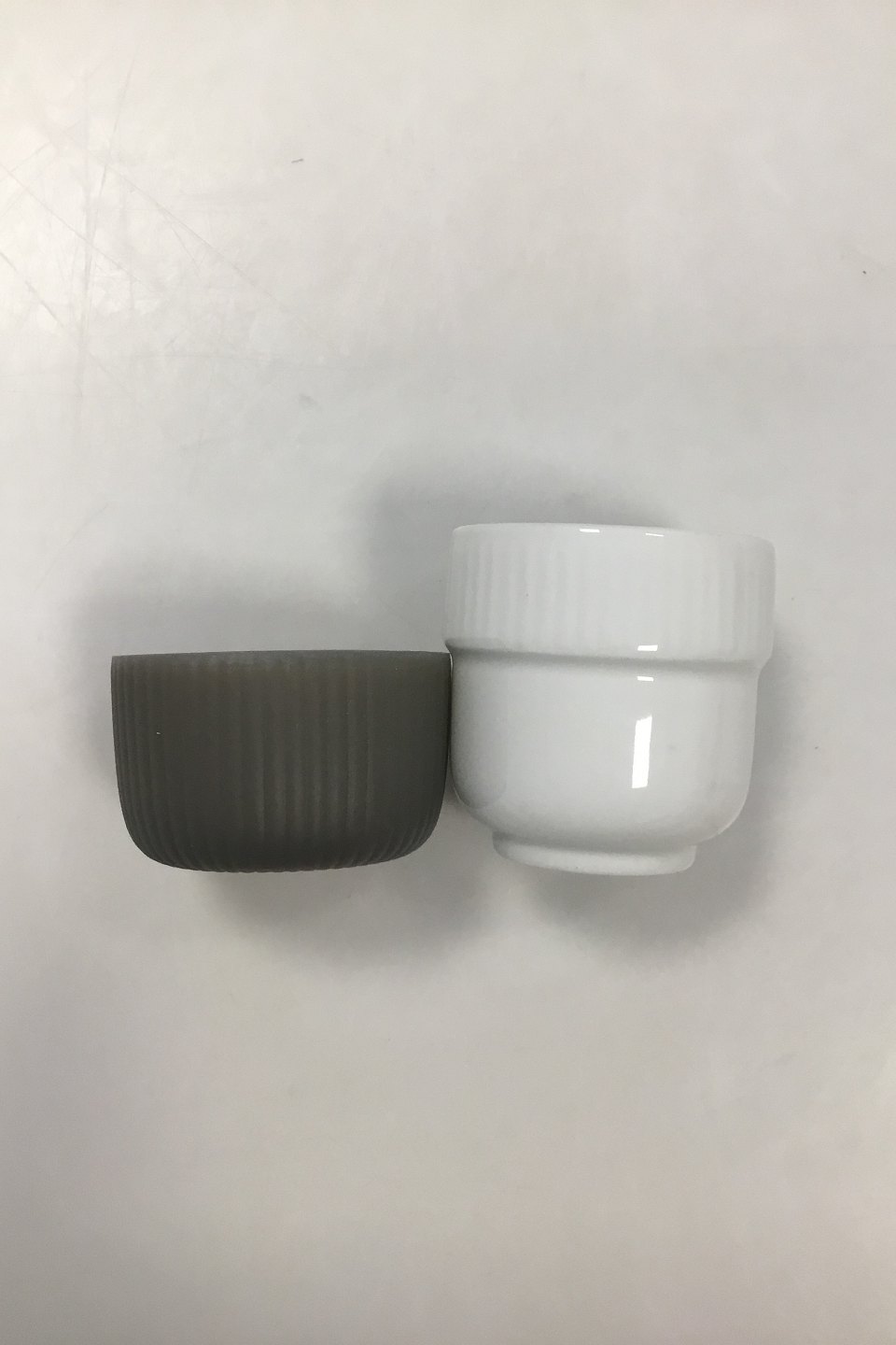 Royal Copenhagen Fluted Contrast Espresso Cup No 493. Measures 5.5 x 5.5 cm (2 11/64 x 2 11/64 in). Content: 8 cl. Colour: Grey.