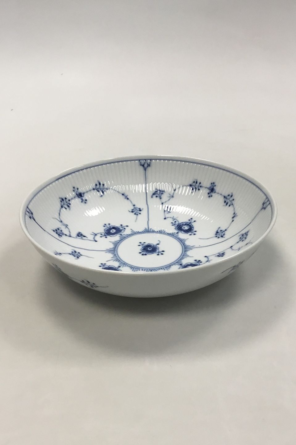 Royal Copenhagen Blue Fluted Plain Bowl No 577. 3rd Quality from 2000-2004. Measures 6 cm x 21.5 cm / 2 23/64 in. x 8 15/32 in. dia.