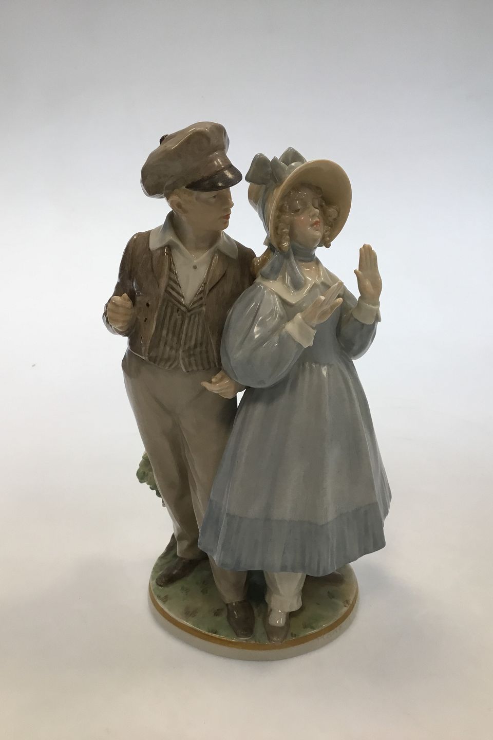 Royal Copenhagen Juliane Marie Figurine with Overglaze No 1783 Hans and Trine. Measures 23.5 cm (9 1/4 in). 1st Quality designed by Chr. Thomsen. Broken fingers on the right hand.