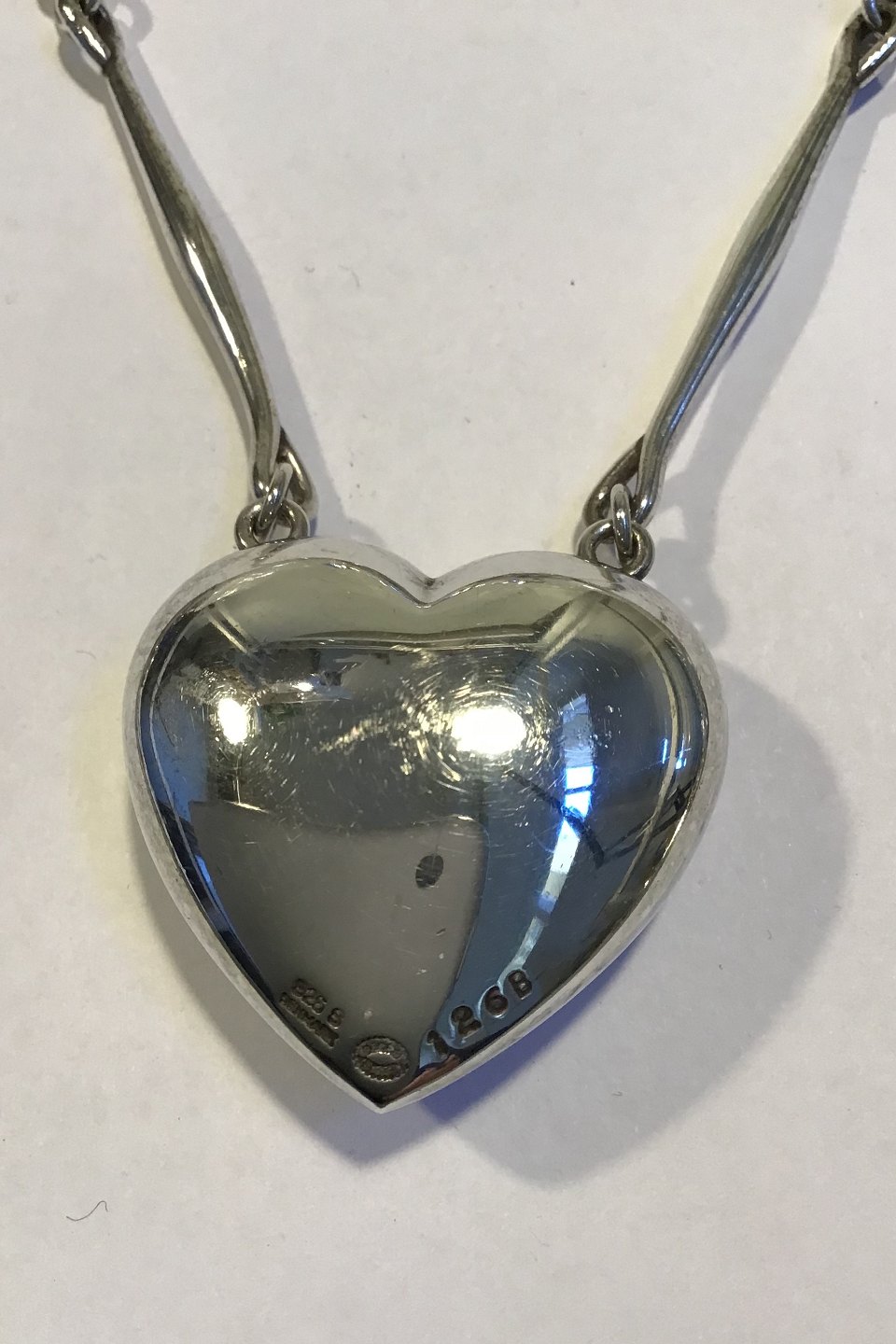 Georg Jensen Sterling Silver Necklace with small Heart Pendant No 126B Astrid Fog Measures Chain 66 cm (25.98 in) Pendant 3 cm x 3 cm (1.18 inch x 1.18 inch) Combined weight 44.5 gr/1.57 oz