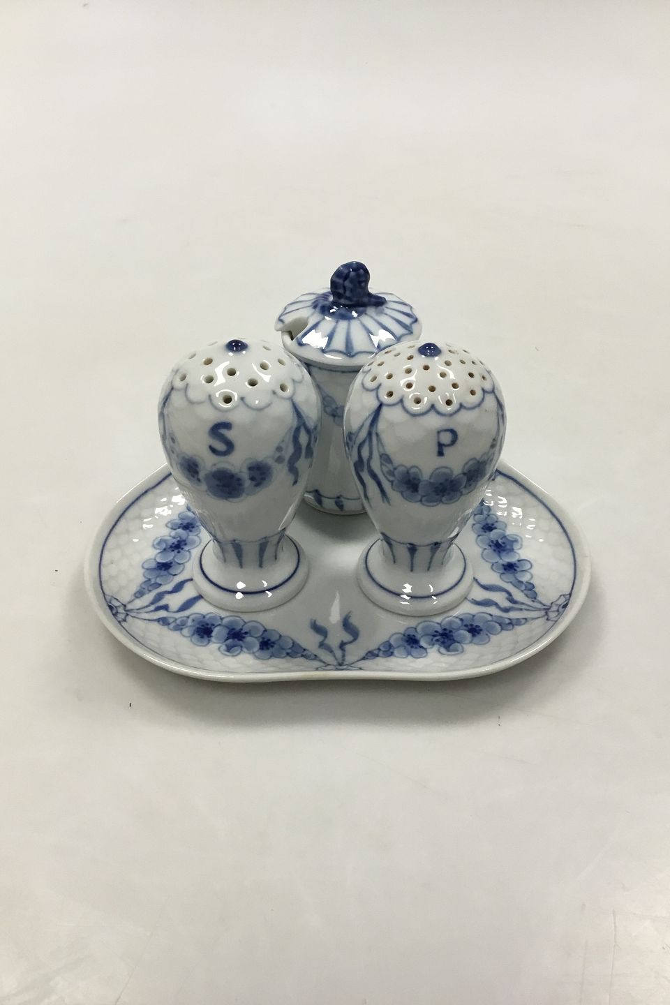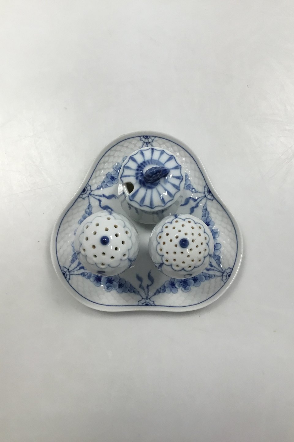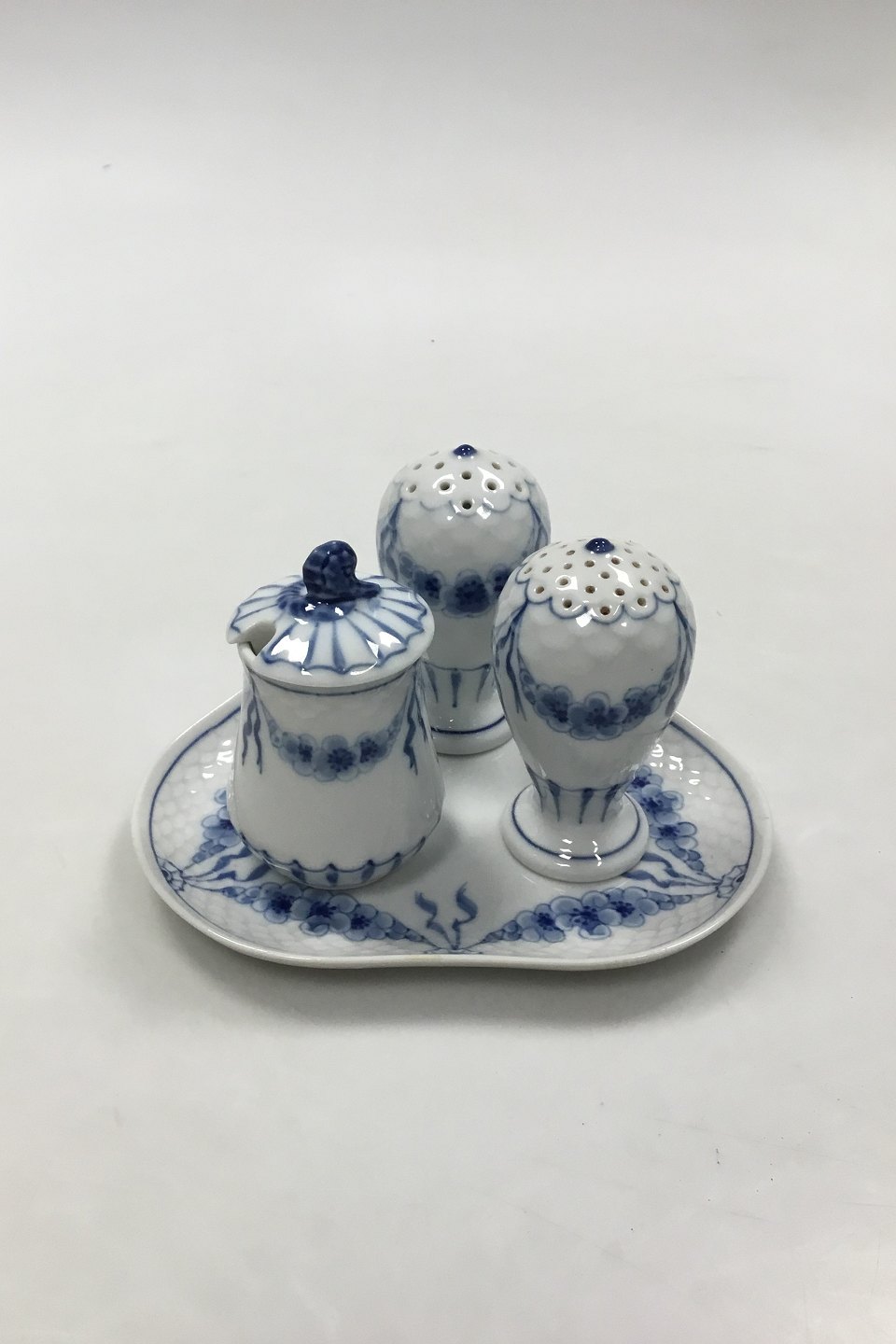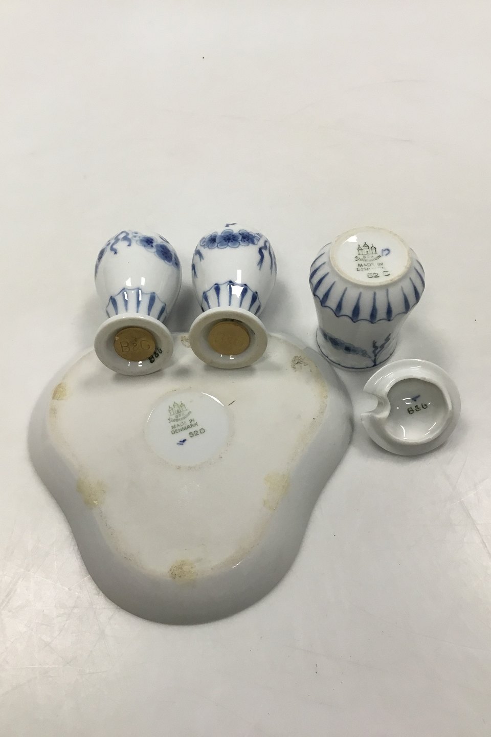 Bing and Grondahl Empire Plat-de-ménage No 52. Dish No 52D measures 13 cm (5 1/8 in). Mustard Jar No 52C and Salt and Pepper Shakers measures 8 cm (3 5/32 in).