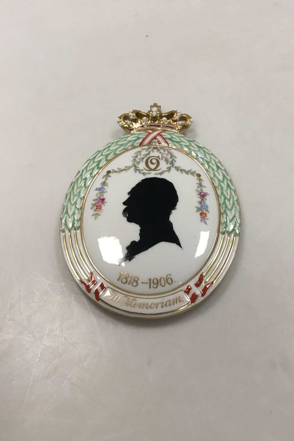 Royal Copenhagen Silhouette Flora Danica Royalty plaque King Christian IX No RC-S1. Measures 10.2 cm x 7.6 cm (4 1/2 in. x 3 1/2 in.)