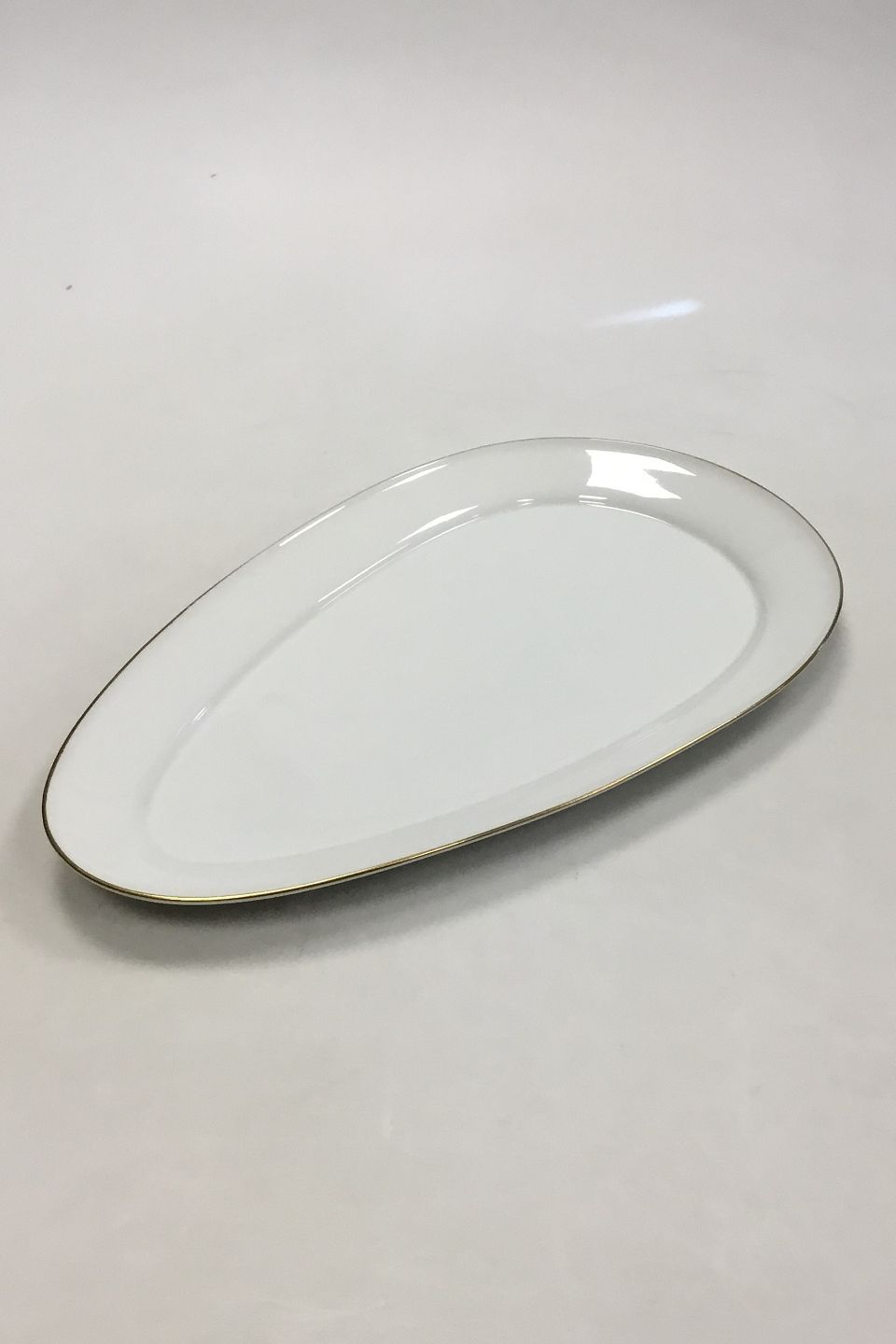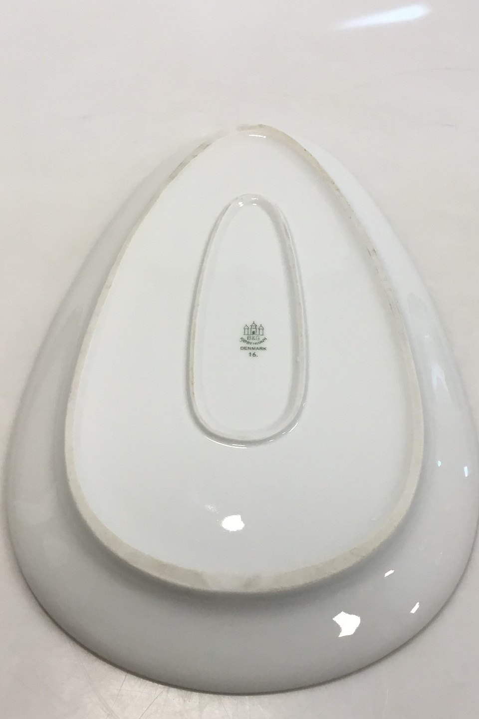 Bing & Grondahl White plain pattern with gold Triangular Dish No 16. Measures 32.5 cm x 20 cm / 12 51/64 in. x 7 7/8 in.