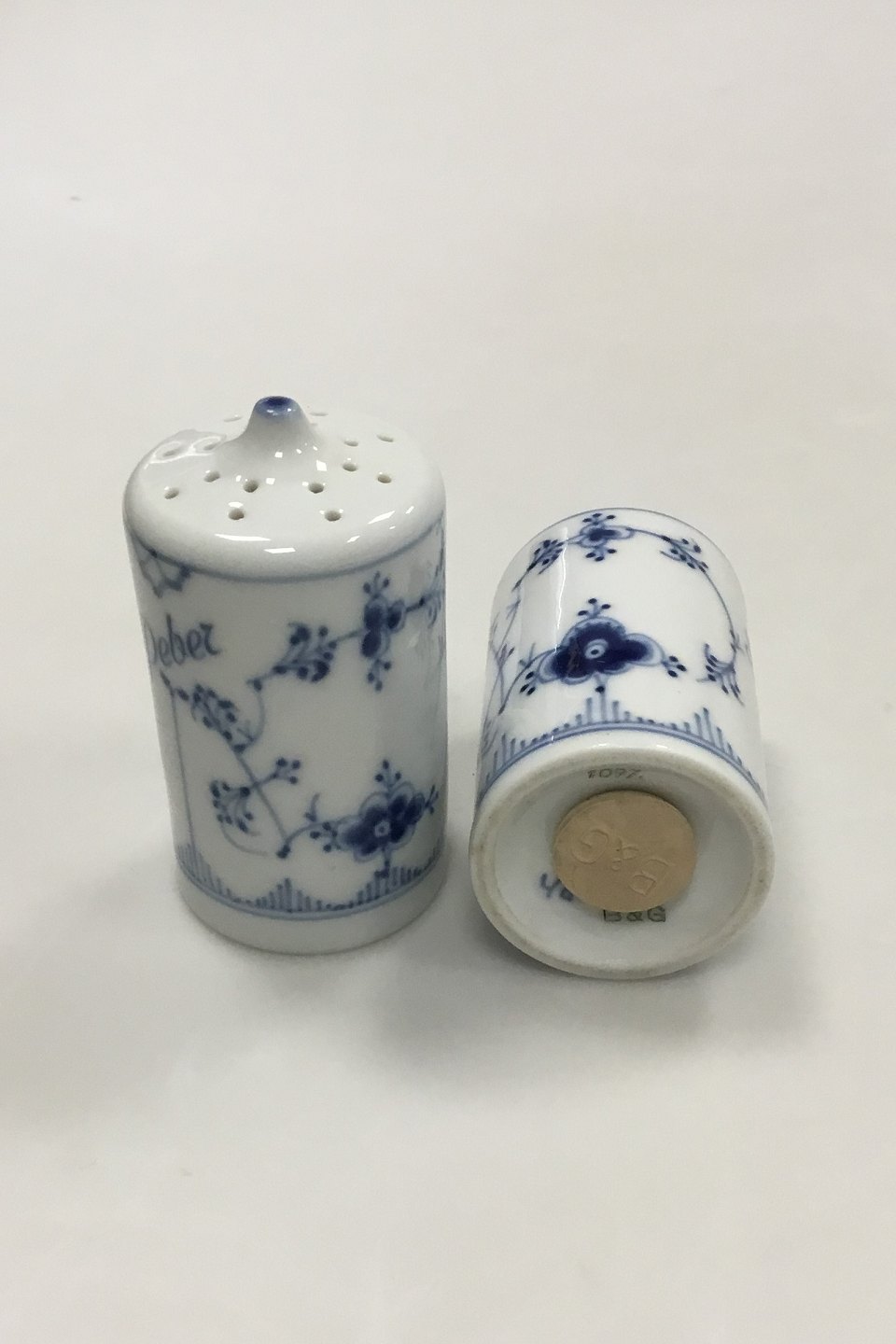 bin g& Grøndahl Blue Fluted Salt and pepper Shaker No 1097. Measures 6 cm / 2 23/64 in. A chip on top of the pepper shaker