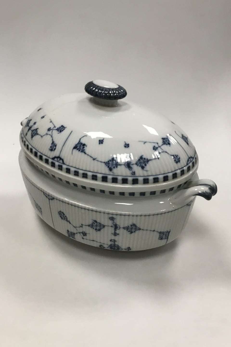 Royal Copenhagen Antique Blue Fluted Oval Tureen. 1st Quality. Measures 35 cm / 13 25/32 in. Repair on one handle.