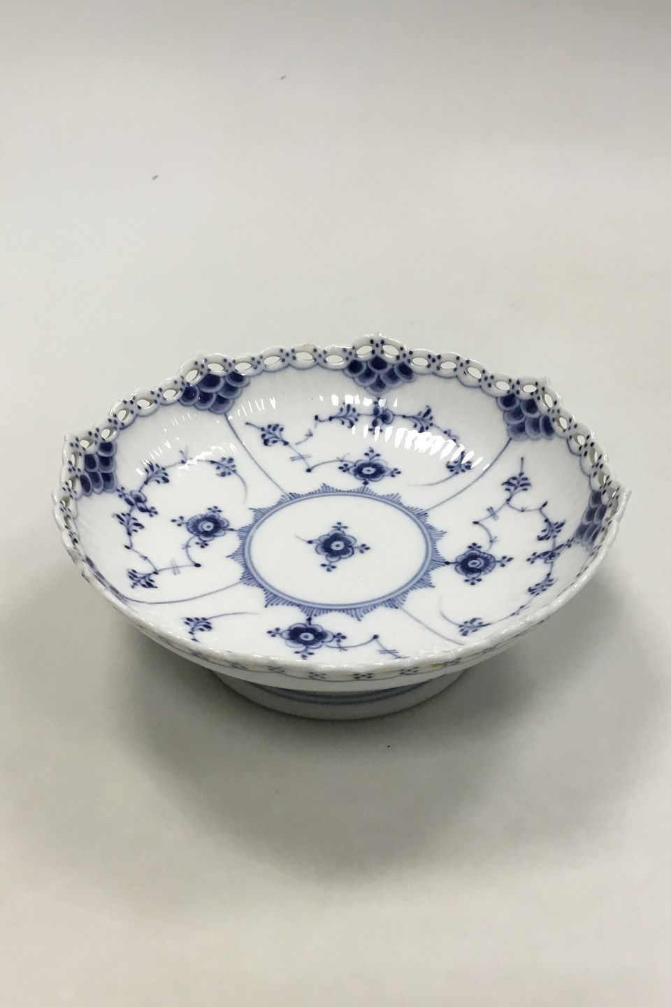 Royal Copenhagen Blue fluted Full Lace Bowl on Foot No. 1023. Measures 17.5 cm / 6 57/64 in. 1st Quality. With two chips on the rim.