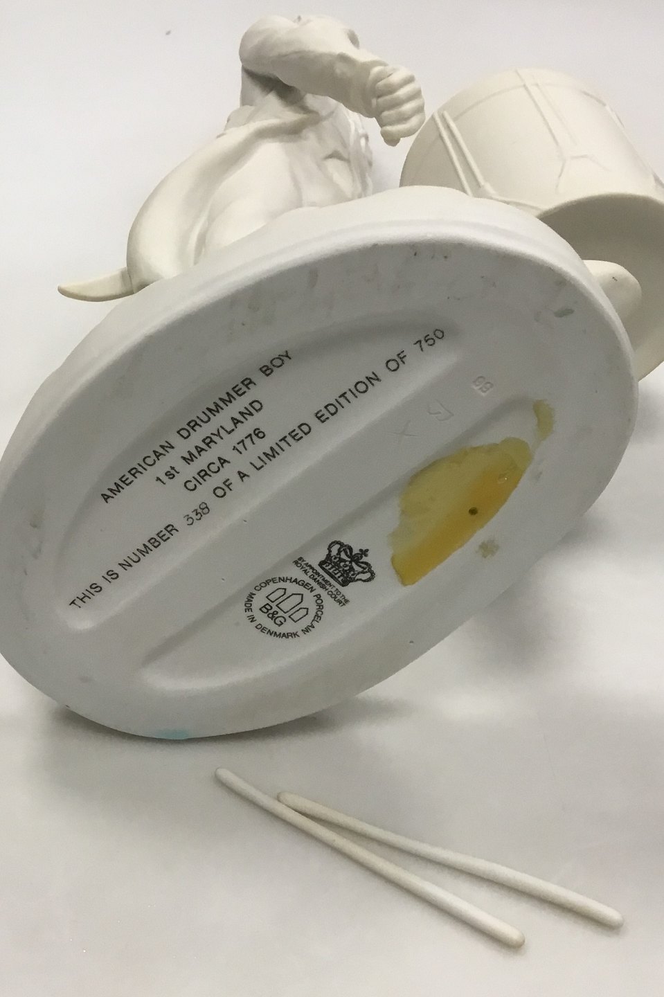 Bing & Grondahl Bisque figurine of "American Drummer Boy, 1st Maryland circa 1776". No 338 of 750. The drumsticks can be taken off. Measures 39 cm / 15 23/64 in.