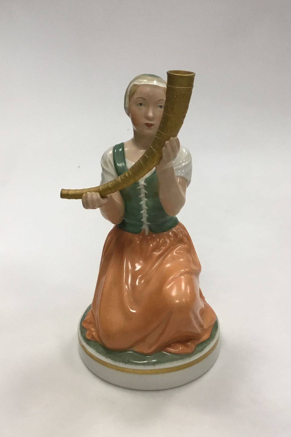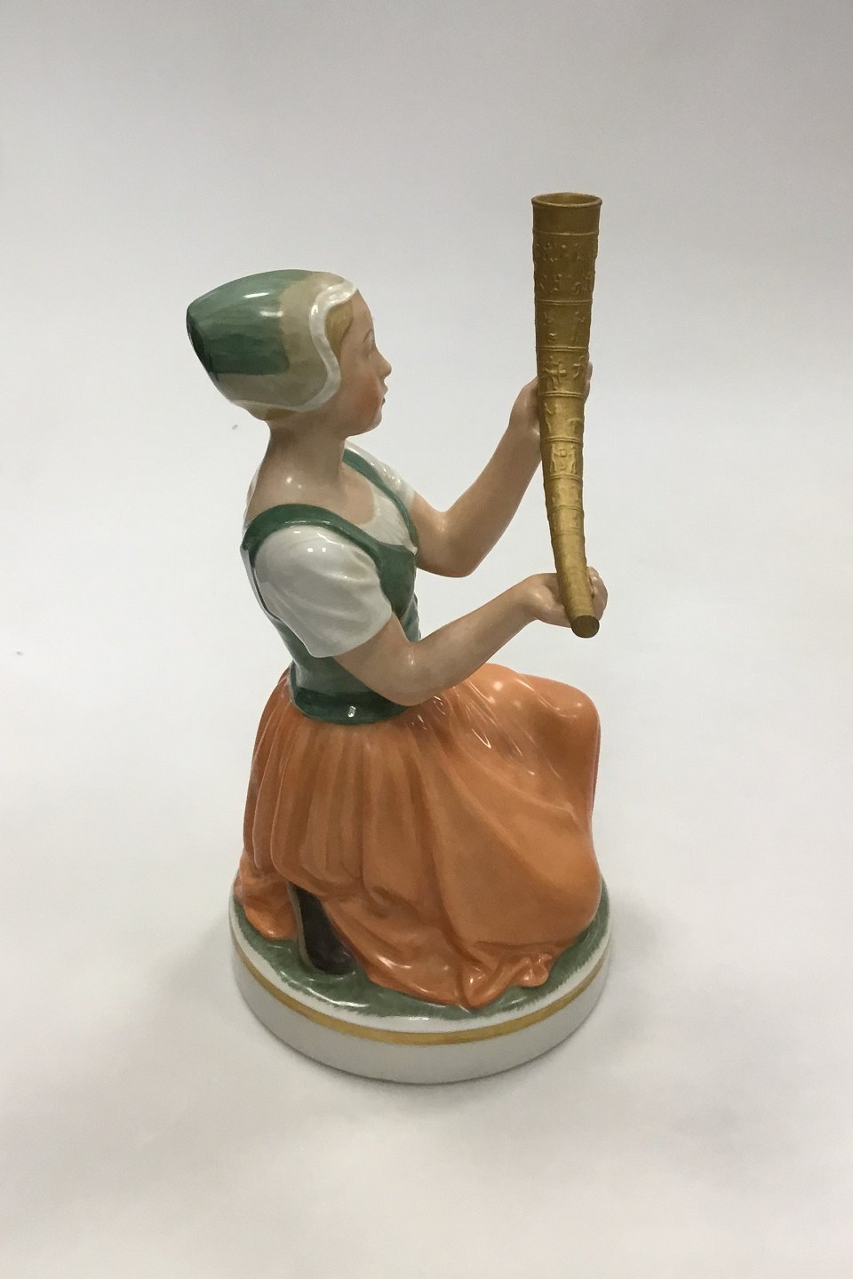 Royal Copenhagen Figurine Girl with the Horn of Gold No 12242. Measures 22 cm / 8 21/32 in. Designed by Holger Christensen