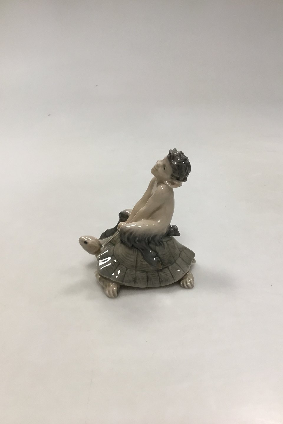 Royal Copenhagen Figurine of Faun on Tortoise No. 858. Designed by Chr. Thomsen in 1907. Measures 9.5 cm / 3 47/64 in.