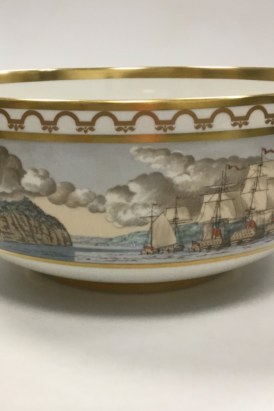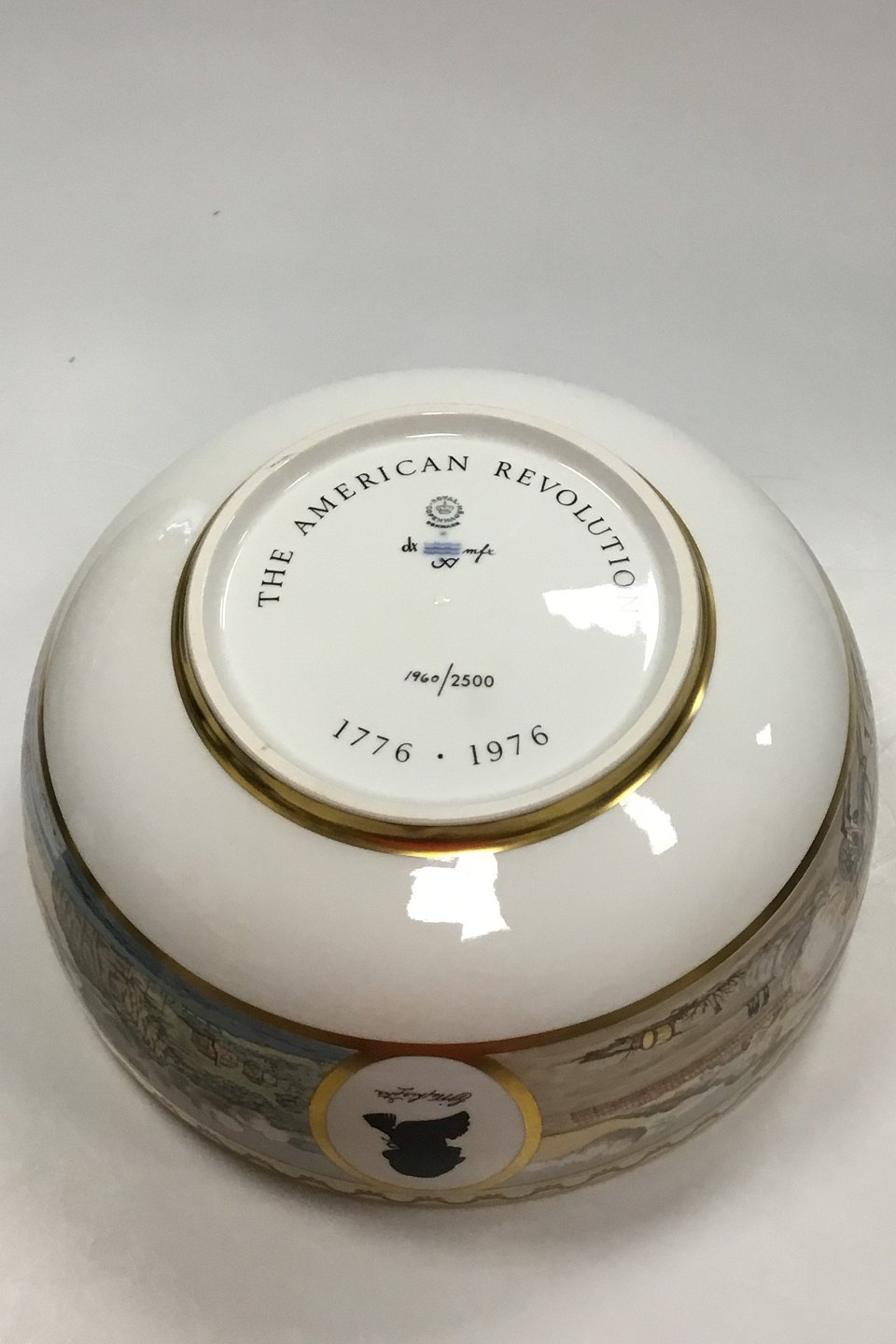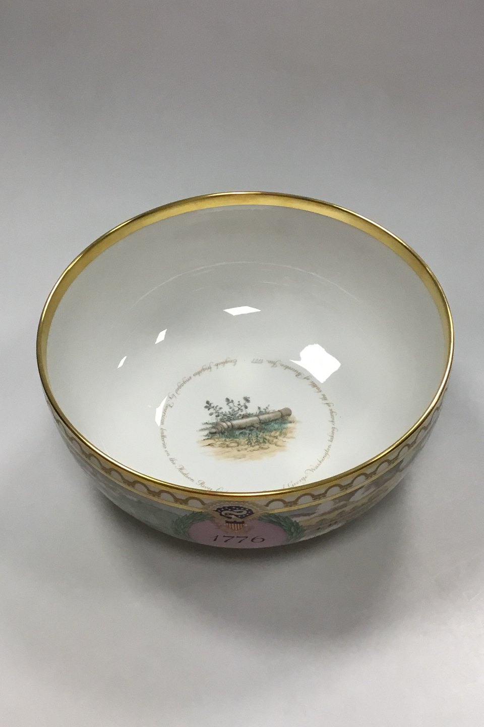 Royal Copenhagen Commemorative Bowl 1775-1975 Decorated in colour and gold scenery of the USA 1776-1976 200th Anniversary of The American Revolution. Measures H 15 cm (5 29/32 in) Diam 33 cm (13 in), 1st quality. Year of issue: 1976 in 2500 copies.