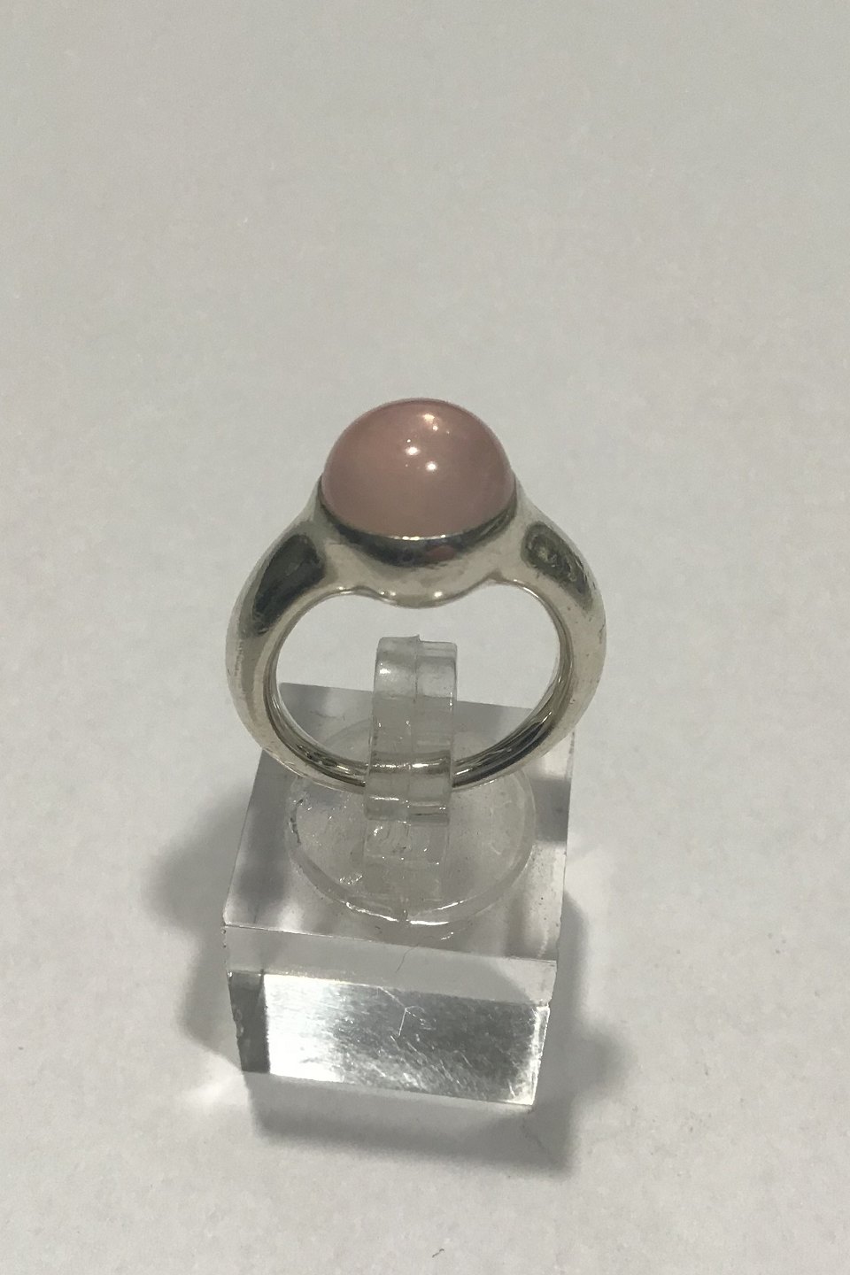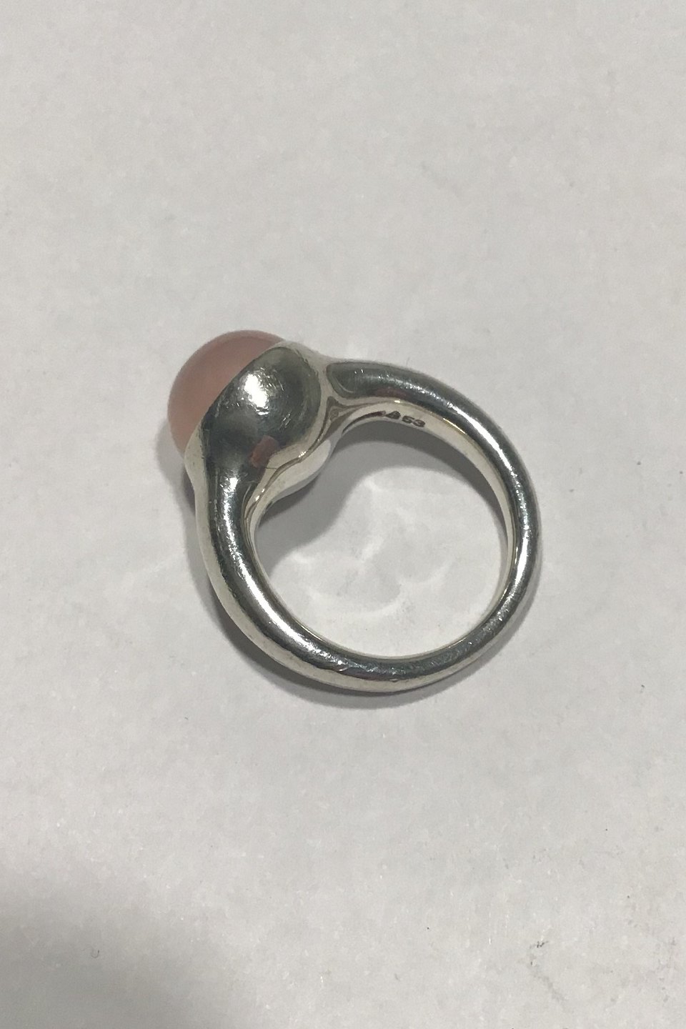 Georg Jensen Sterling Silver Ring No 453 Droplet Rosa Quartz Ring Size 48 (US 4 ½) Weight 7.6 gr/0.27 oz Design: Kim Buck