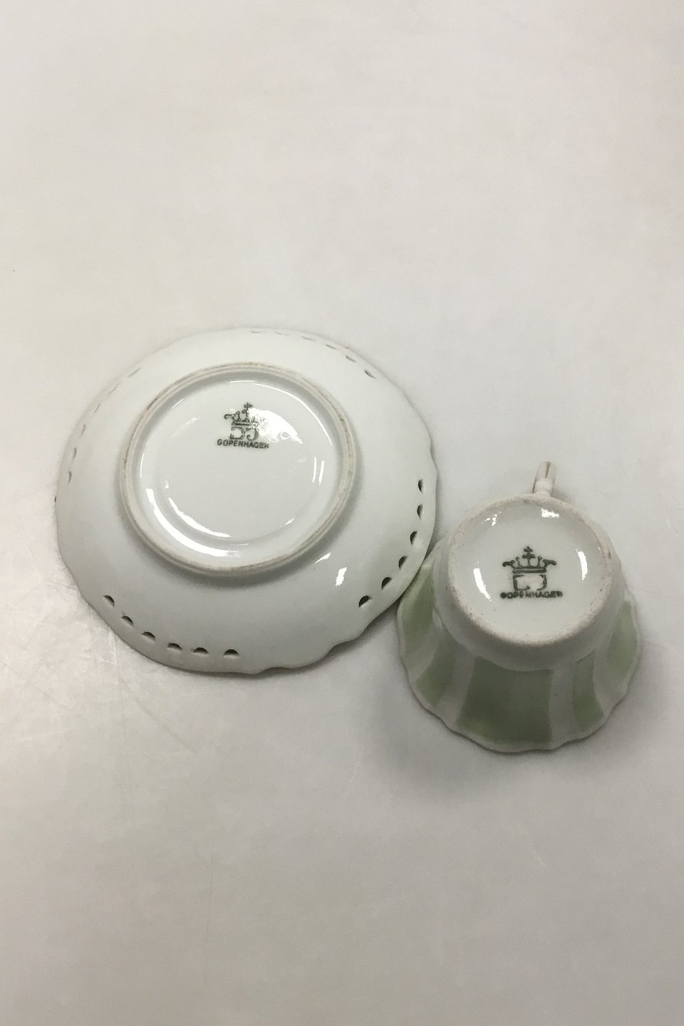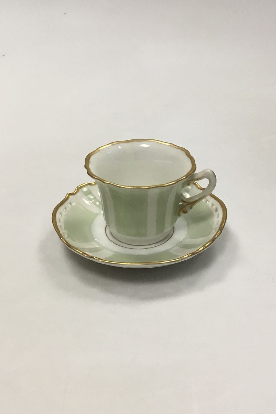 Dahl Jensen Dronning Mocca Cup and Saucer. Measures Cup: 5 cm x 7 cm dia. Saucer: 11.5 cm ( 2 in. x 2 3/4 in. dia. Saucer: 4 17/32 in.