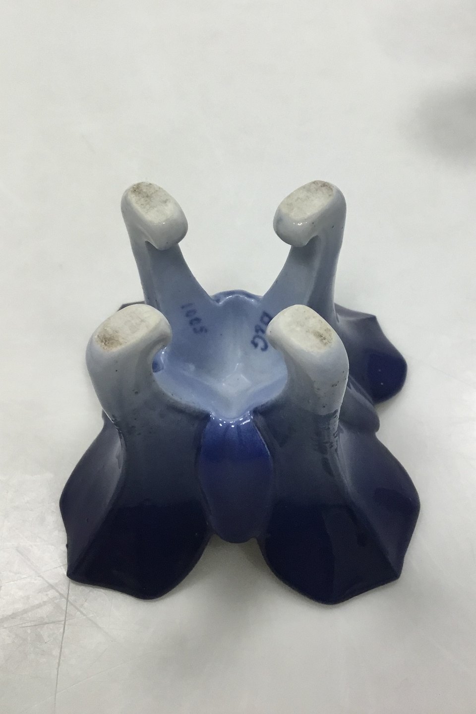Bing og Grondahl Art Nouveau A pair of small flower shaped vases on four feet. No 5001. Measures 7 cm 7 2 3/4 in. with a few tiny chips