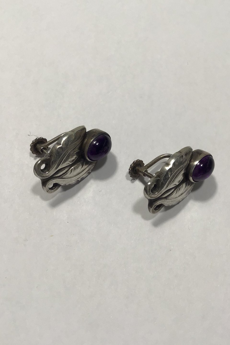 Georg Jensen Sterling Silver Earrings No 108 Amethyst (Screws) Measures 2.4 cm (0 15/16 in) Combined Weight 8.3 gr / 0.29 oz