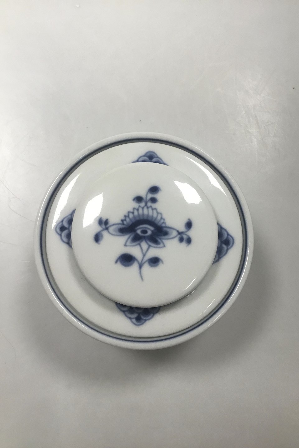 Royal Copenhagen Blue Fluted Plain Lidded Bowl / Bonbonniere No 5024. Measures 11 cm x 7 cm / 4.33 in. x 2.76 in.