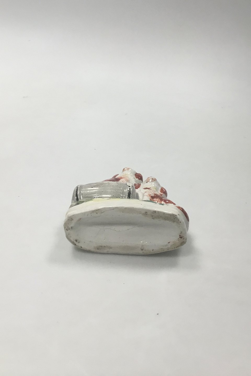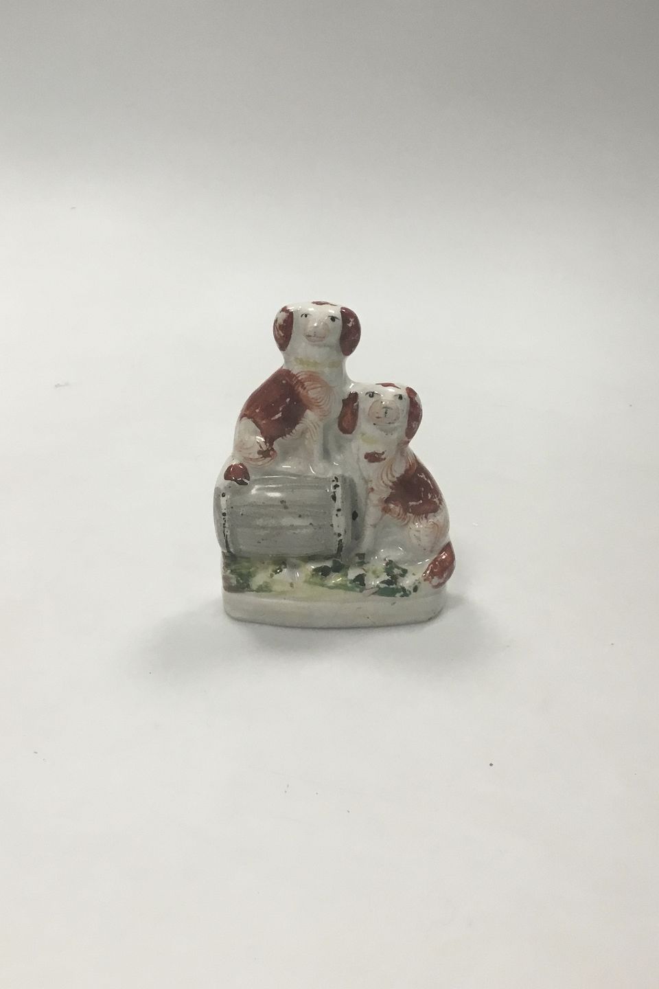 Staffordsjire(?) Faience. Two dogs on a Barrel. Measures 10.5 cm / 4.13 in.